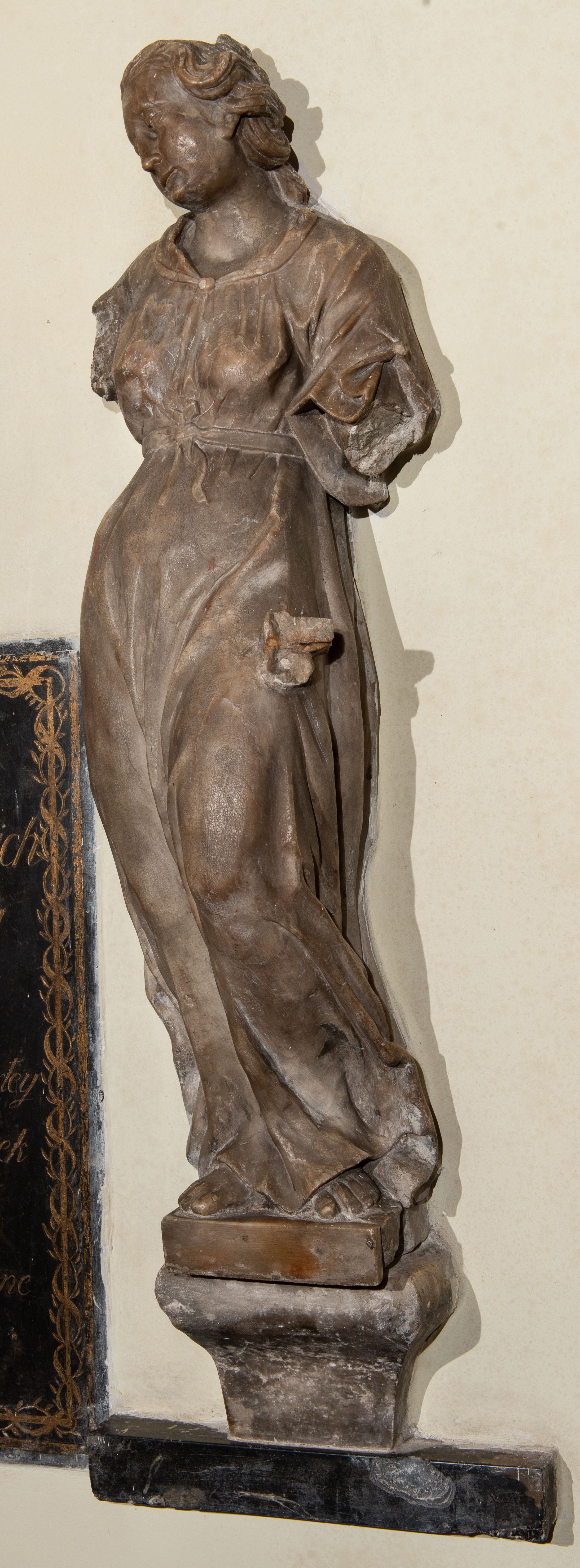Sposób wykonania rzeźby ukazującej zapewne personifikację z końca XVI wieku oraz jej proporcje zdradzają rękę wprawnego kamieniarza, który z pietyzmem w alabastrze odkuł wiele precyzyjnych detali twarzy, czy też stroju, jak np. przepasującą biodra wstążkę. Szczególnie na uwagę zasługuje sposób kształtowania piersi okrytych prawie że przeźroczystą tkaniną. Niestety uszkodzenia w partii rąk i pozbawienie przedstawienia atrybutu uniemożliwia jednoznaczną interpretację oraz jej pierwotne przeznaczenie.