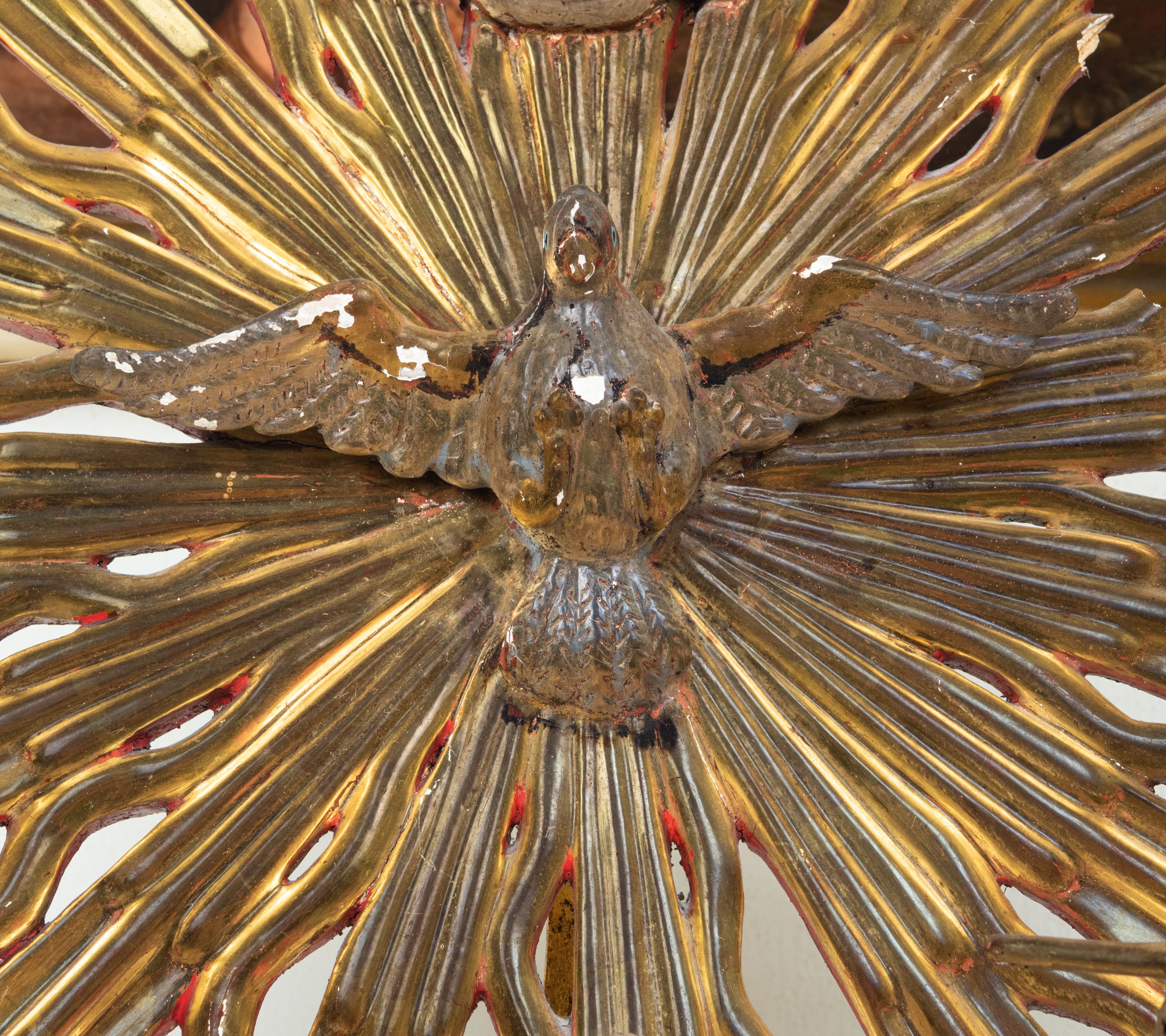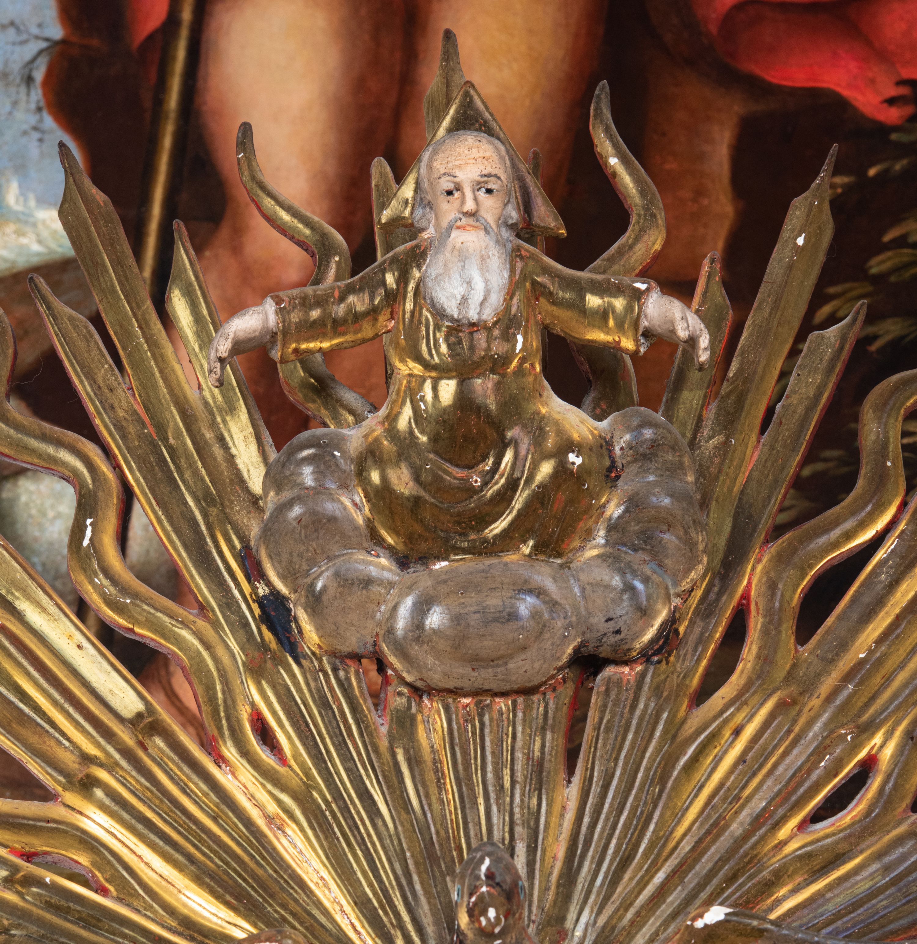 Dobry, figury pokryte warstwą brudu, złocenia przetarte do pulmentu, na podstawie odpryski gruntu.
