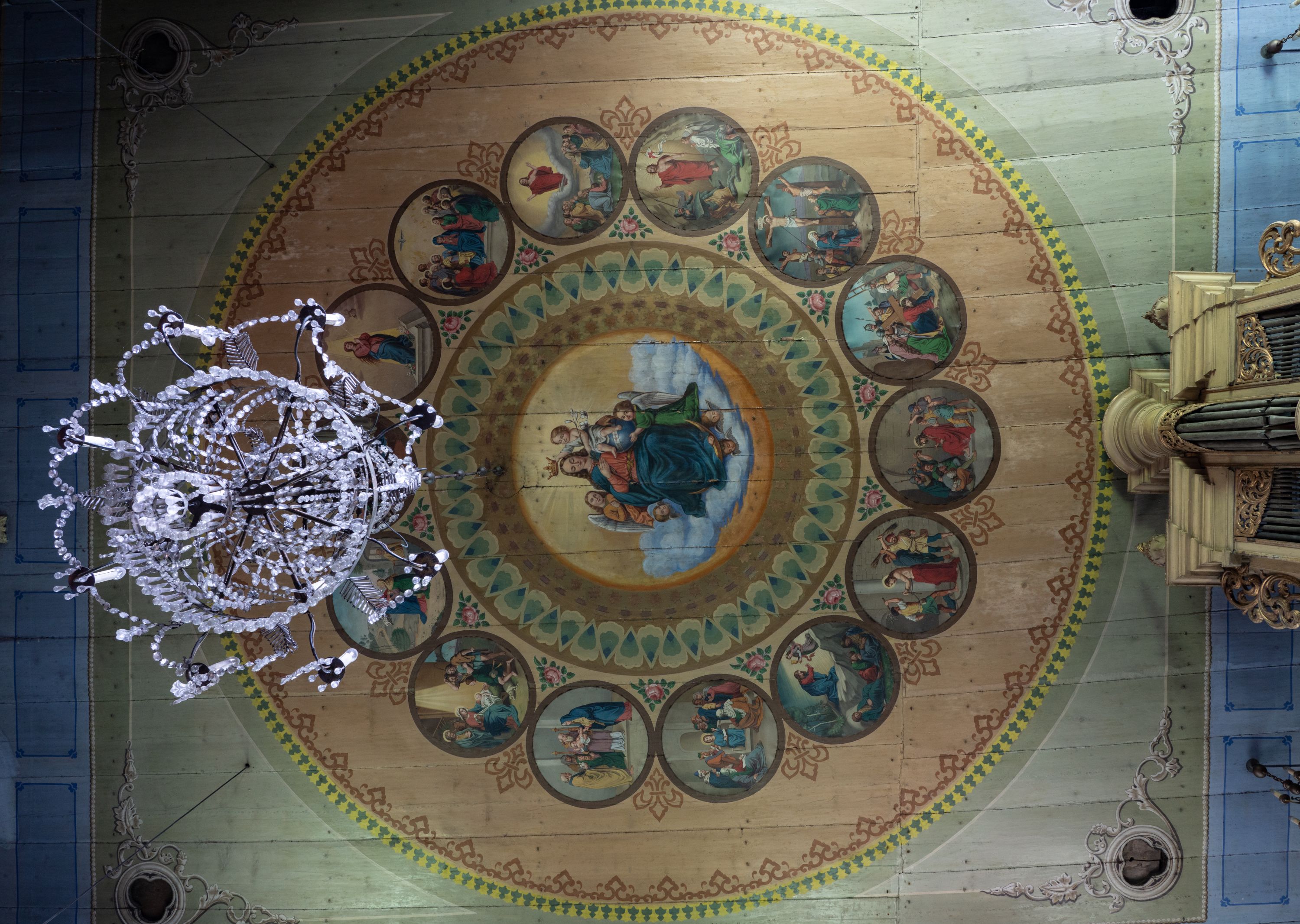 Polichromie wnętrza kościoła parafialnego w Polance Wielkiej wykonano na początku XX wieku.