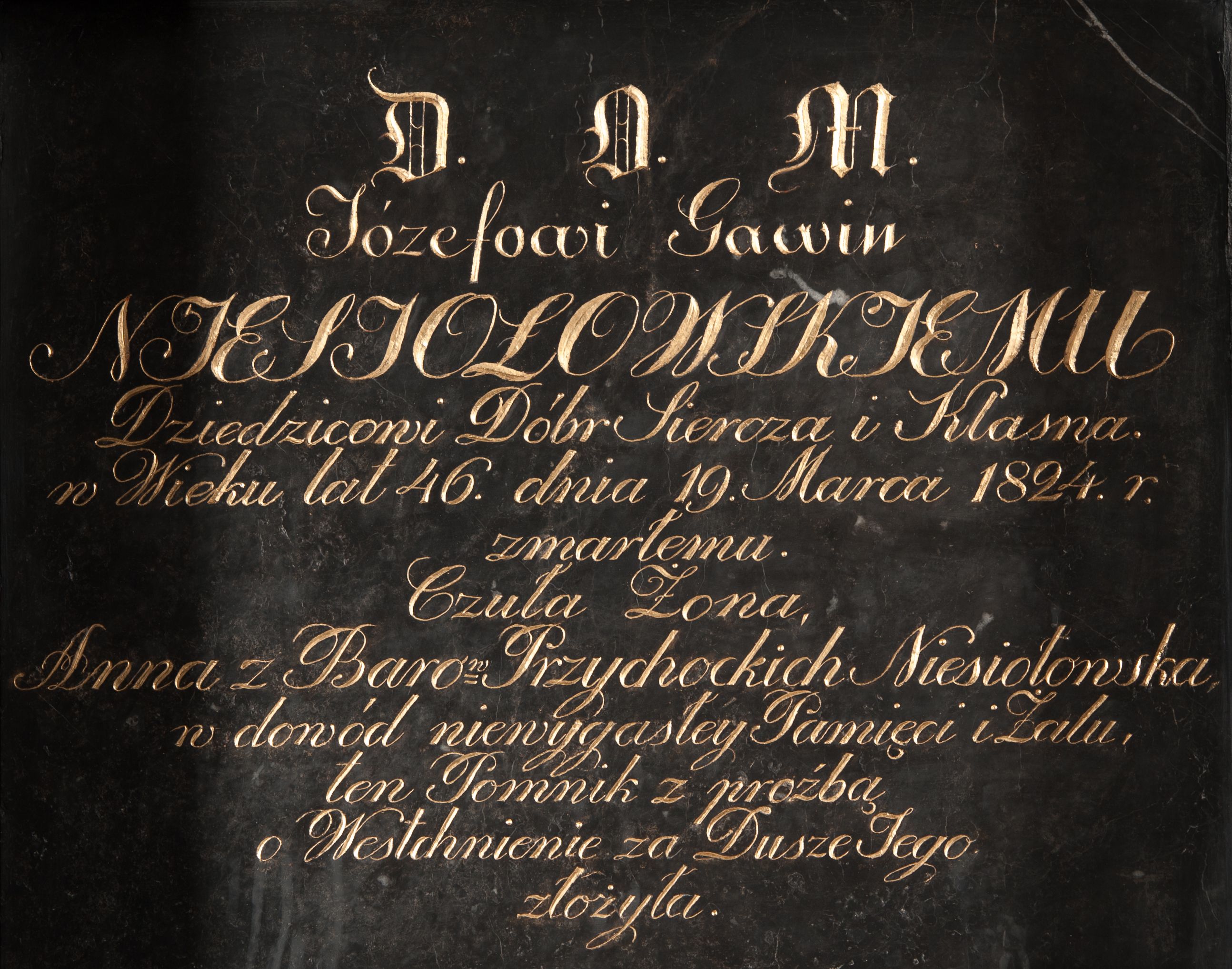 Pomnik ufundowany przez żonę Józefa Gawina Niesiołowiskiego – Annę z Barów Przychockich.