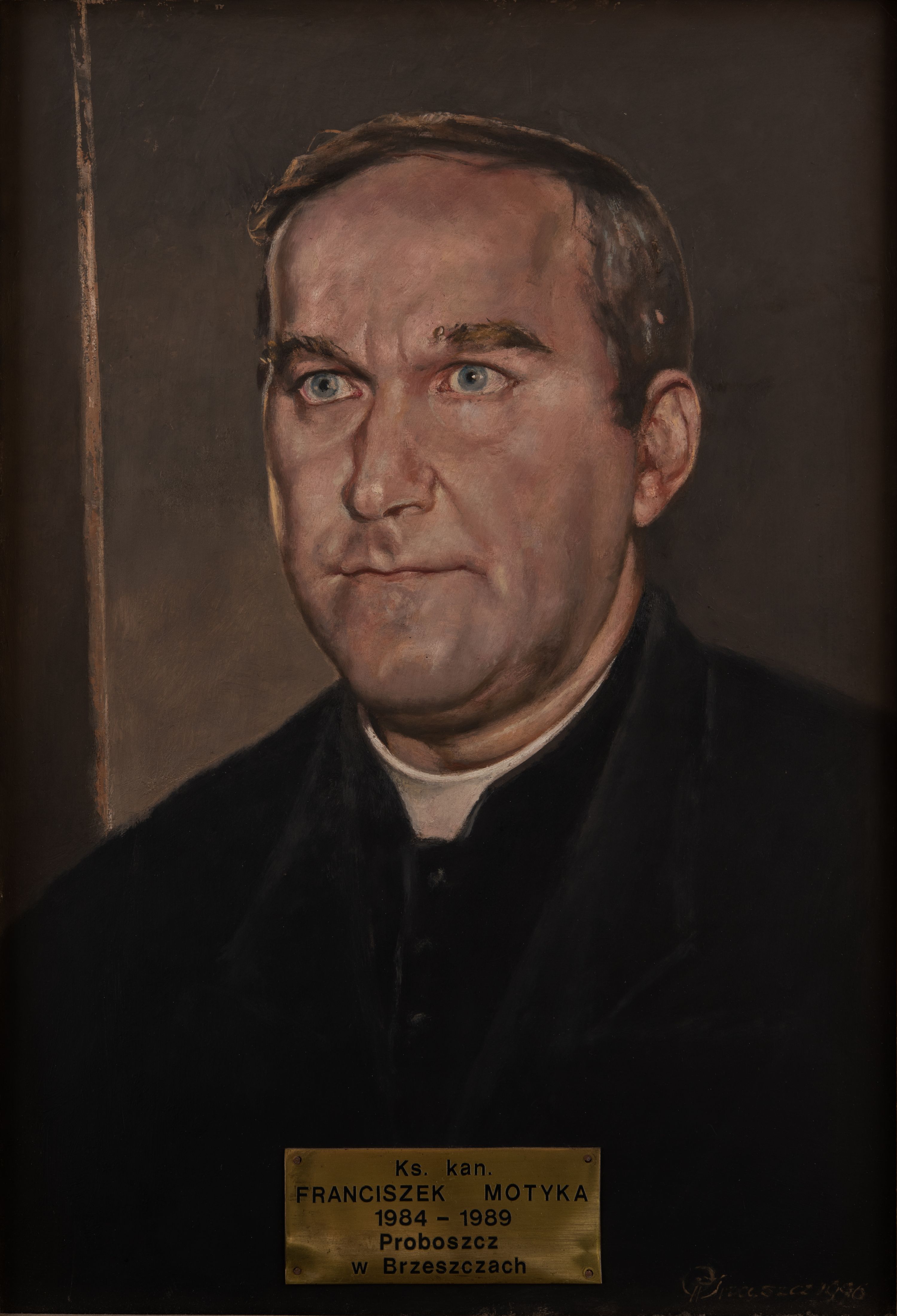 Portret księdza kanonika Franciszka Motyki, będącego proboszczem parafii w Brzeszczach w latach 1984-1989, wykonano jako uzupełnienie galerii portretowej w zakrystii w Brzeszczach w latach osiemdziesiątych XX wieku.