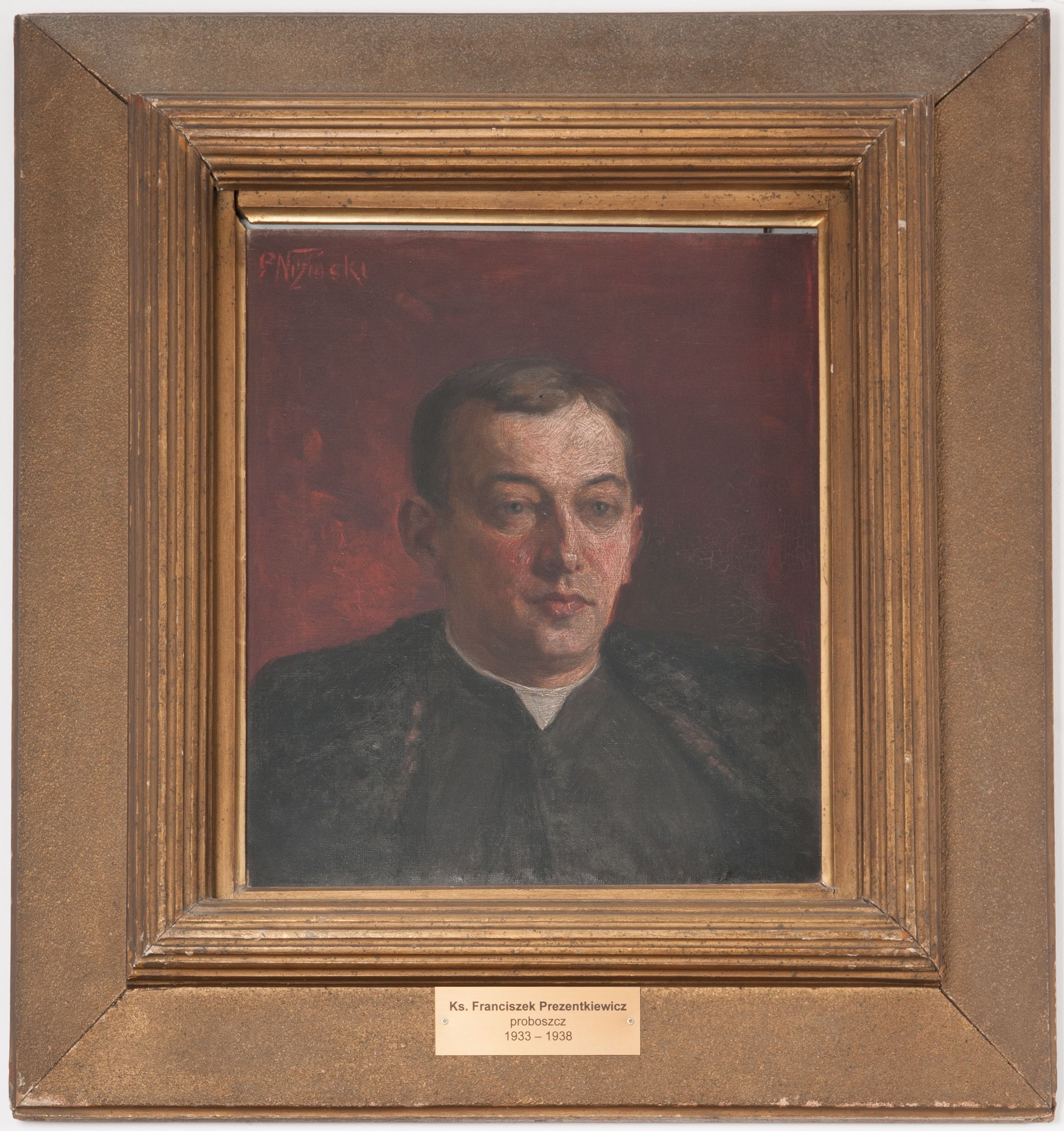 Portret księdza Franciszka Prezentkiewicza, proboszcza parafii w Wieliczce w latach 1933-1937, został namalowany przez Piotra Nizińskiego, ucznia Jana Matejki oraz studenta Akademii Monachijskiej. Obraz powstał najpewniej na przełomie XIX i XX wieku.