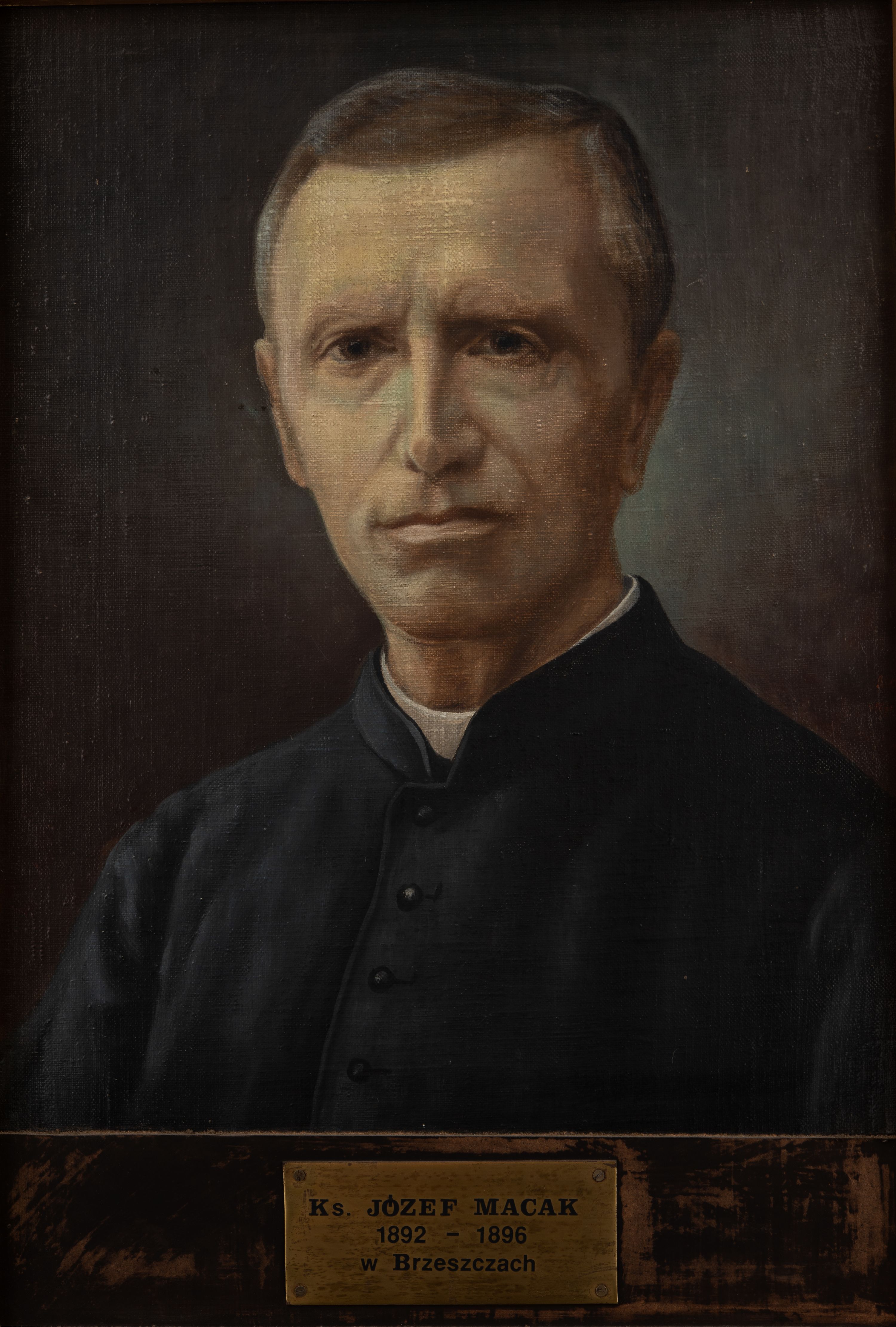Portret księdza Józefa Macaka, proboszcza w Brzeszczach w latach 1892-1896 wykonano najprawdopodobniej w latach sześćdziesiątych XX jako uzupełnienie galerii portretów proboszczów w zakrystii.