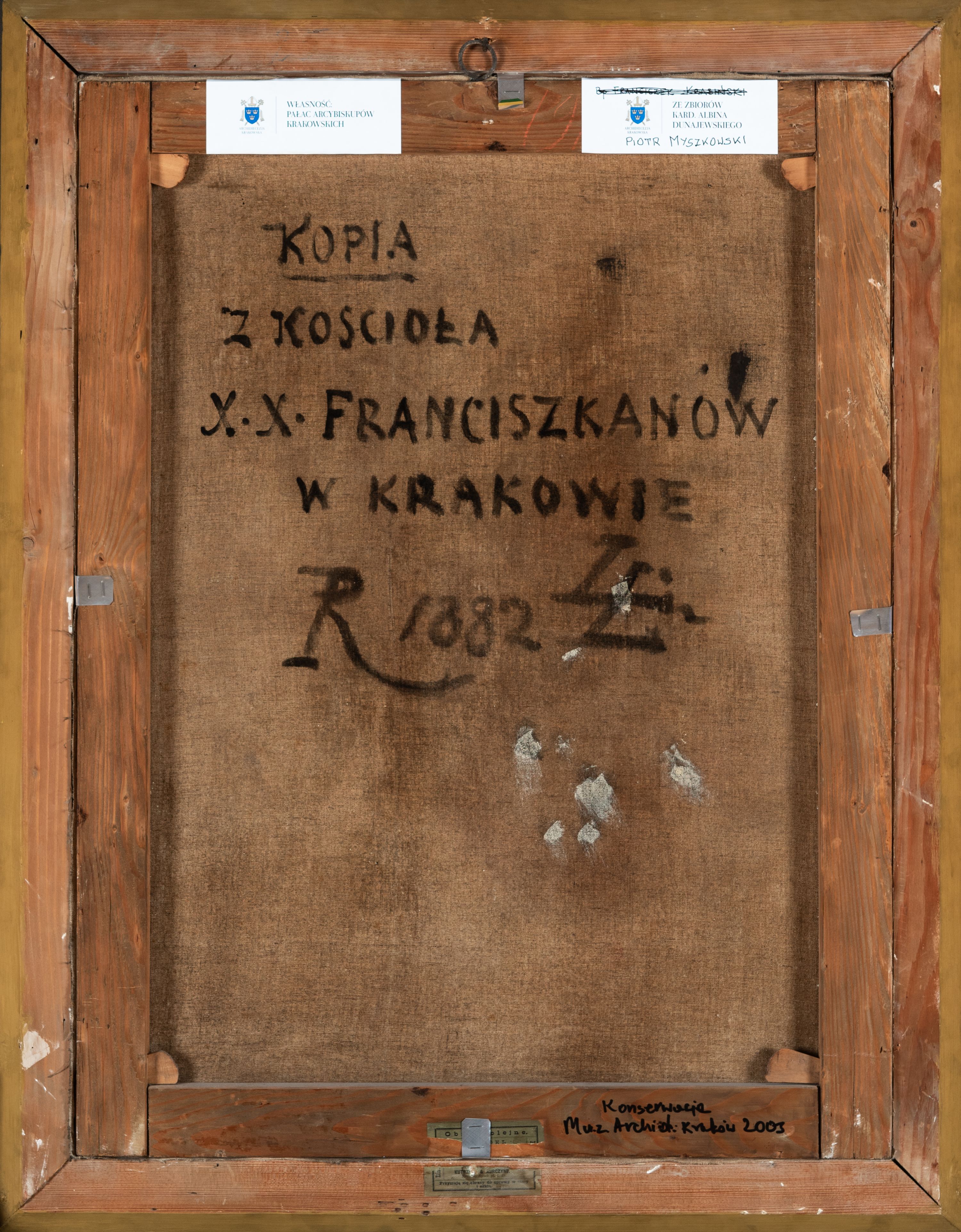Dzieło jest kopią obrazu z kościoła Franciszkanów w Krakowie. Był poddany konserwacji w Muzeum Archidiecezjalnym w Krakowie w 2003 roku.