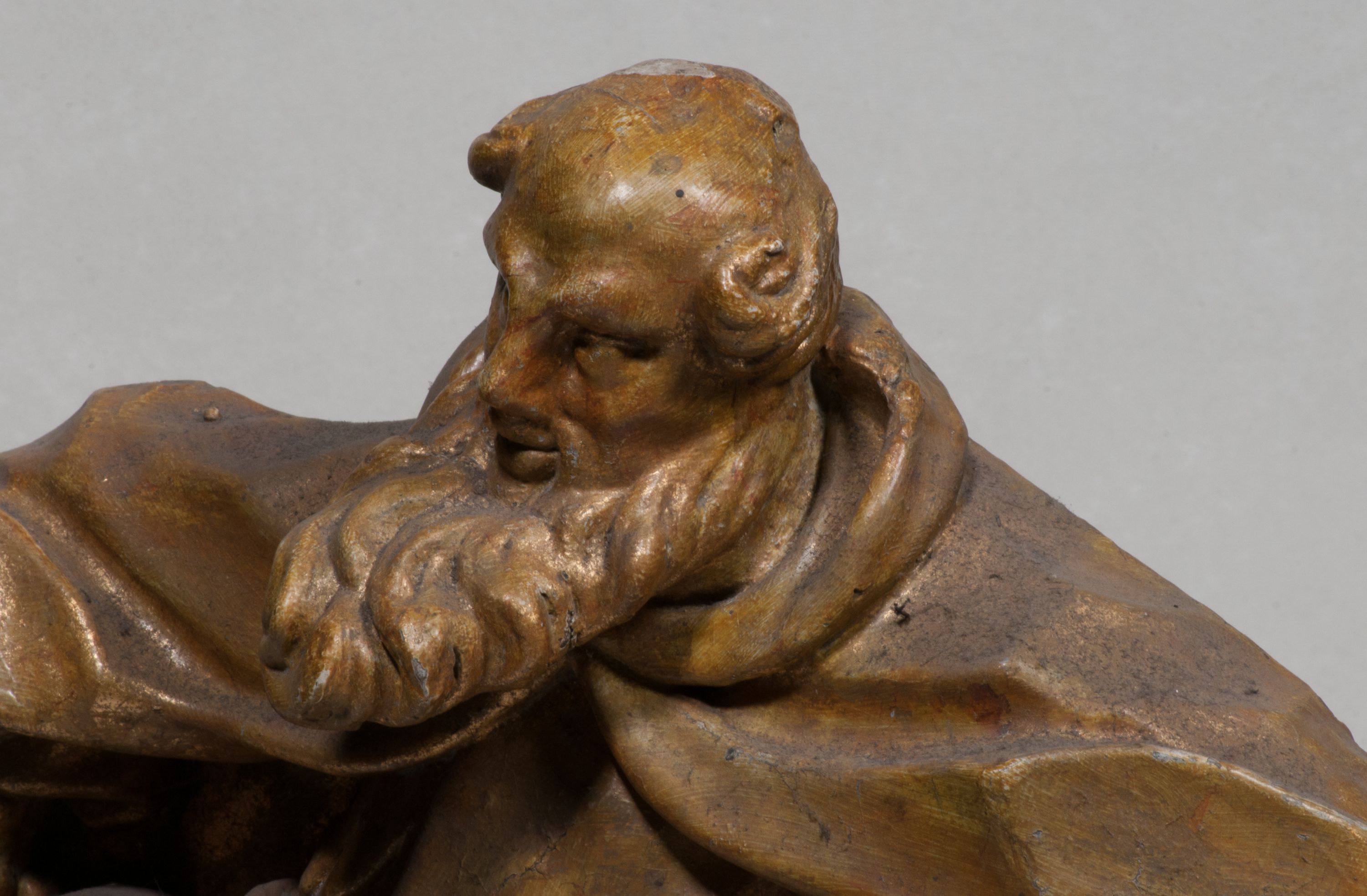 Figura powstała w drugiej połowie XVIII wieku i być może stanowi pozostałość dekoracji rzeźbiarskiej nieistniejącego już ołtarza. Prawdopodobnie przedstawia Eliasza w stosunkowo nietypowej ikonografii. Prorok ukazany został w habicie karmelitańskim z księgą, gdyż uważany jest za duchowego ojca zakonu karmelitańskiego. Natomiast dzban jest jednym z atrybutów Eliasza i nawiązuje do epizodu z jego życia.