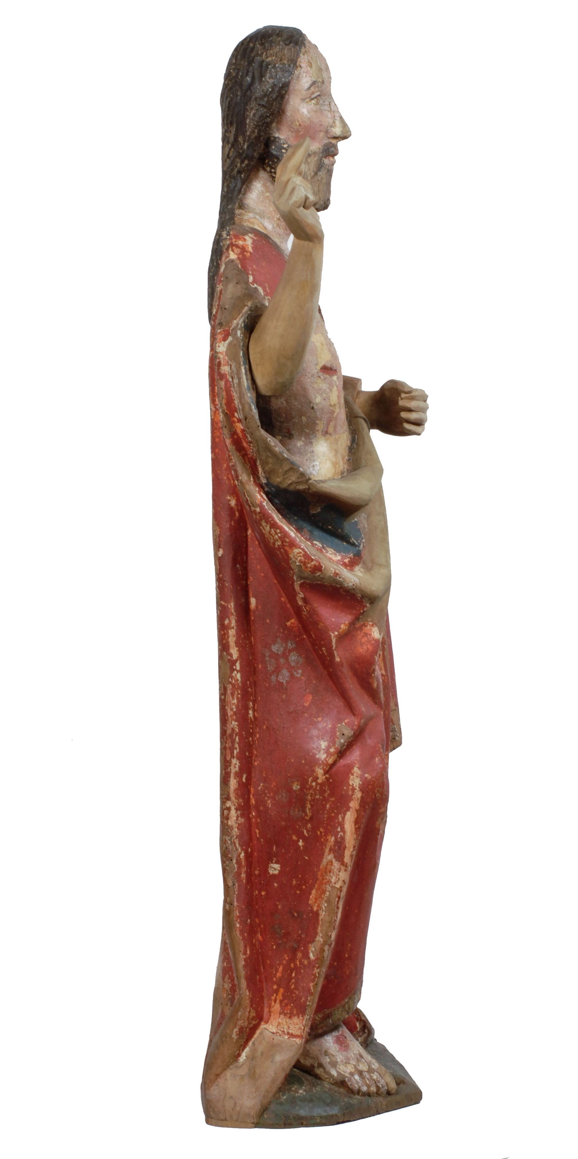 Widoczne ubytki w partii fałd płaszcza, ślady po drewnojadach, w wielu miejscach ubytki warstwy malarskiej, szczególnie wyraźne złuszczenia w okolicach twarzy. Konserwowana w roku 1964 przez E. Michalskiego (ASP Kraków) – usunięcie późniejszych przekształceń i rekonstrukcja przedstawienia jako Chrystusa Zmartwychwstałego.