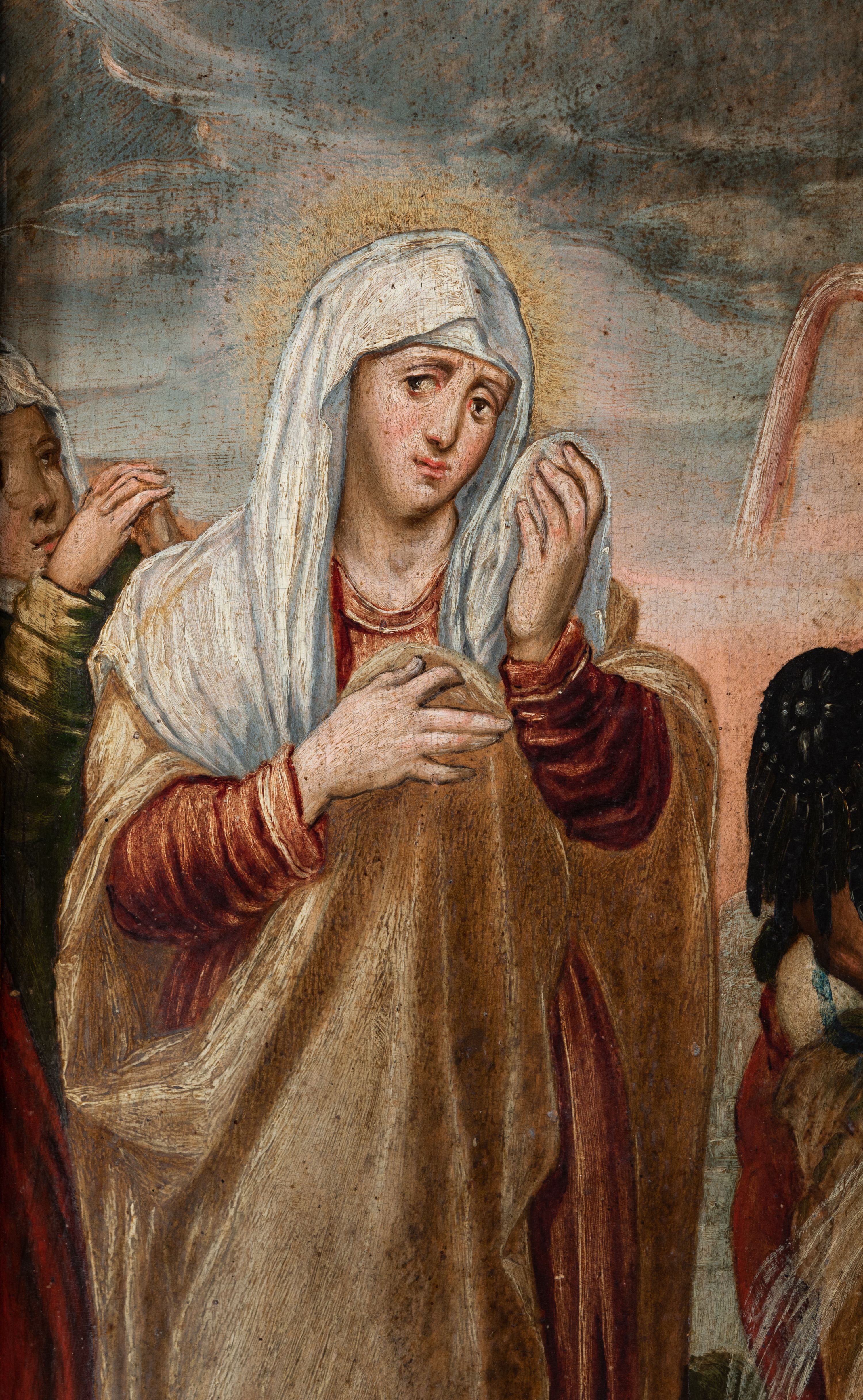 Obraz przedstawiający scenę Ukrzyżowania mógł powstać w pierwszej połowie XVII wieku. Dzieło zostało przekazane do pałacu biskupiego 15 stycznia 1982 przez księdza Teofila Kurowskiego, archiprezbitera parafii Wniebowzięcia Najświętszej Marii Panny w Krakowie.
