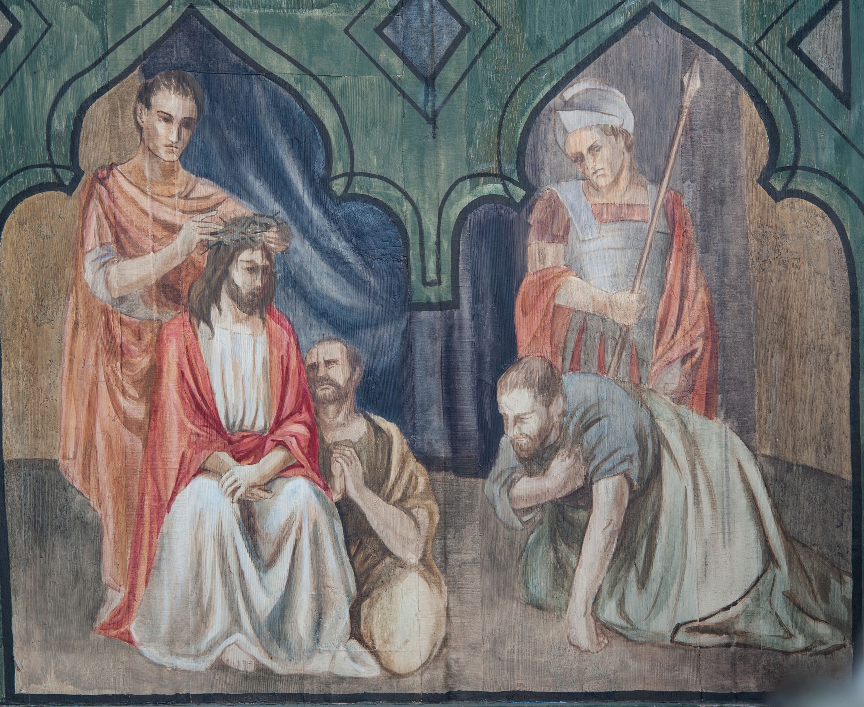 Ogrójec z dziewiętnastowieczną figurą Chrystusa Ukrzyżowanego w kwietniu 1989 roku został uzupełniony wewnątrz polichromią ze scenami męki Pańskiej wykonaną przez nieznanego z imienia Różeckiego z Kętka. Dzięki wykonaniu polichromii w ogrójcu, rzeźbiony krucyfiks został wpisany w szerszy kontekst. Utworzono przedstawienie Ukrzyżowania z Marią i św. Janem – główną ze scen męki Pańskiej, której cykl umieszczony jest na ścianach bocznych ogrójca.