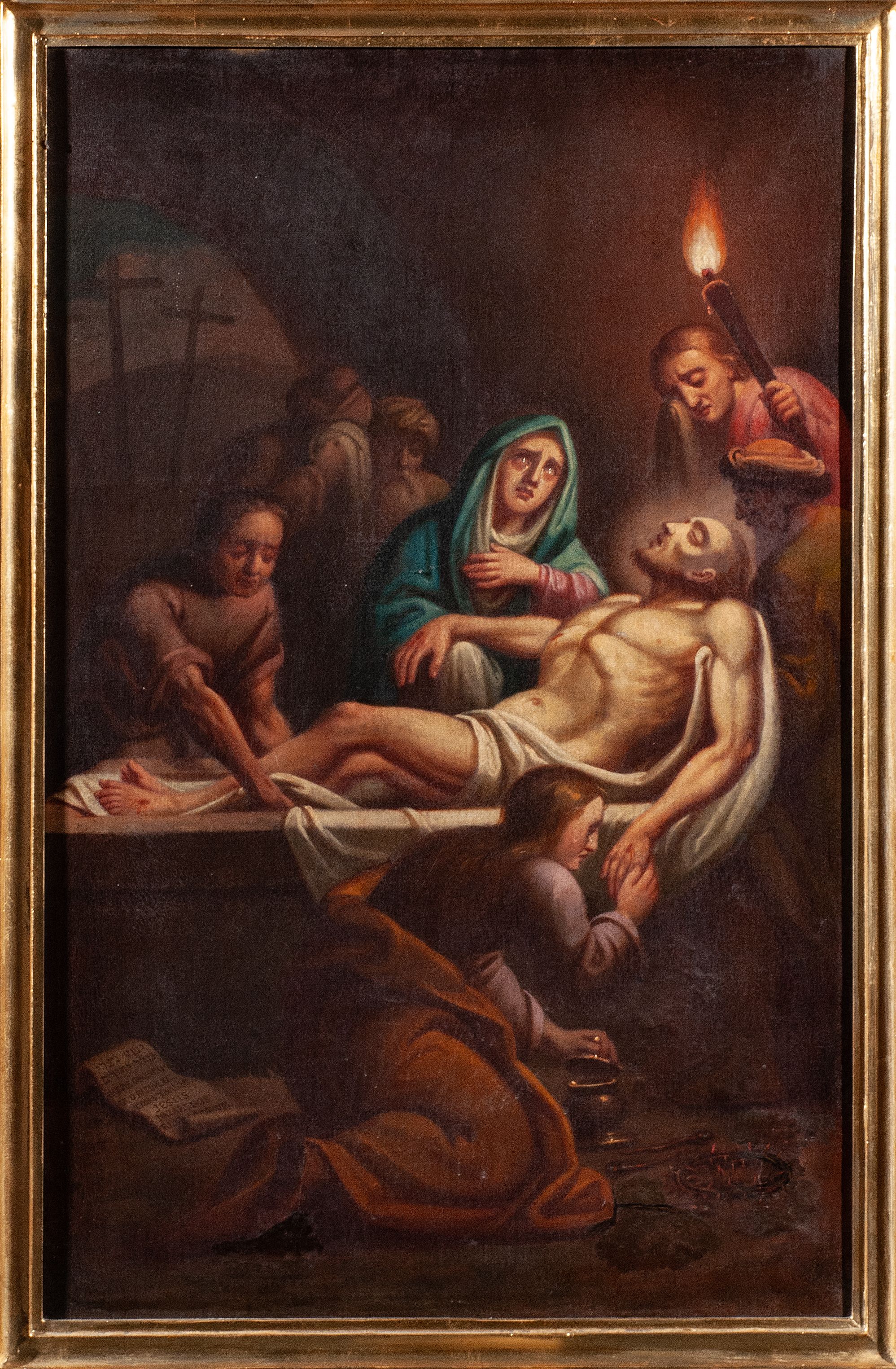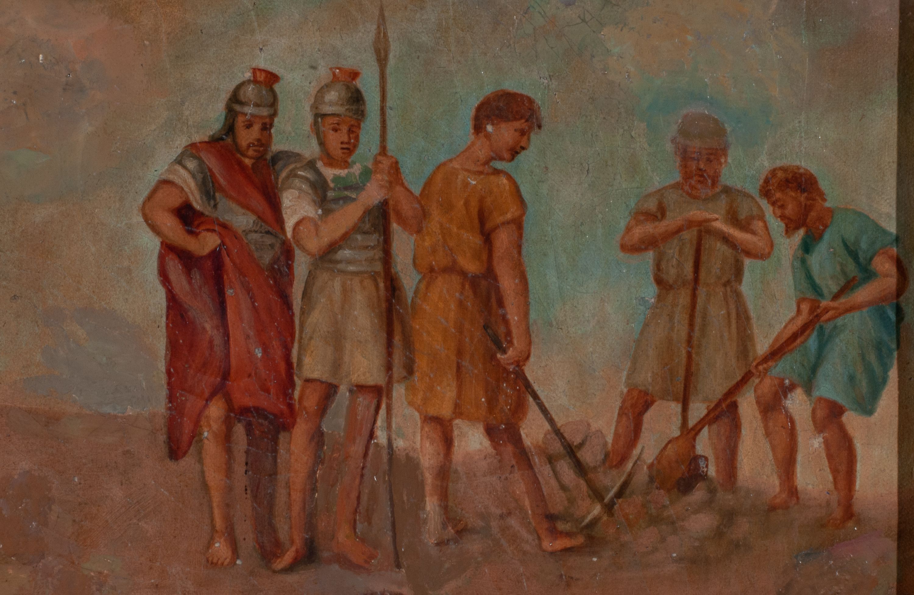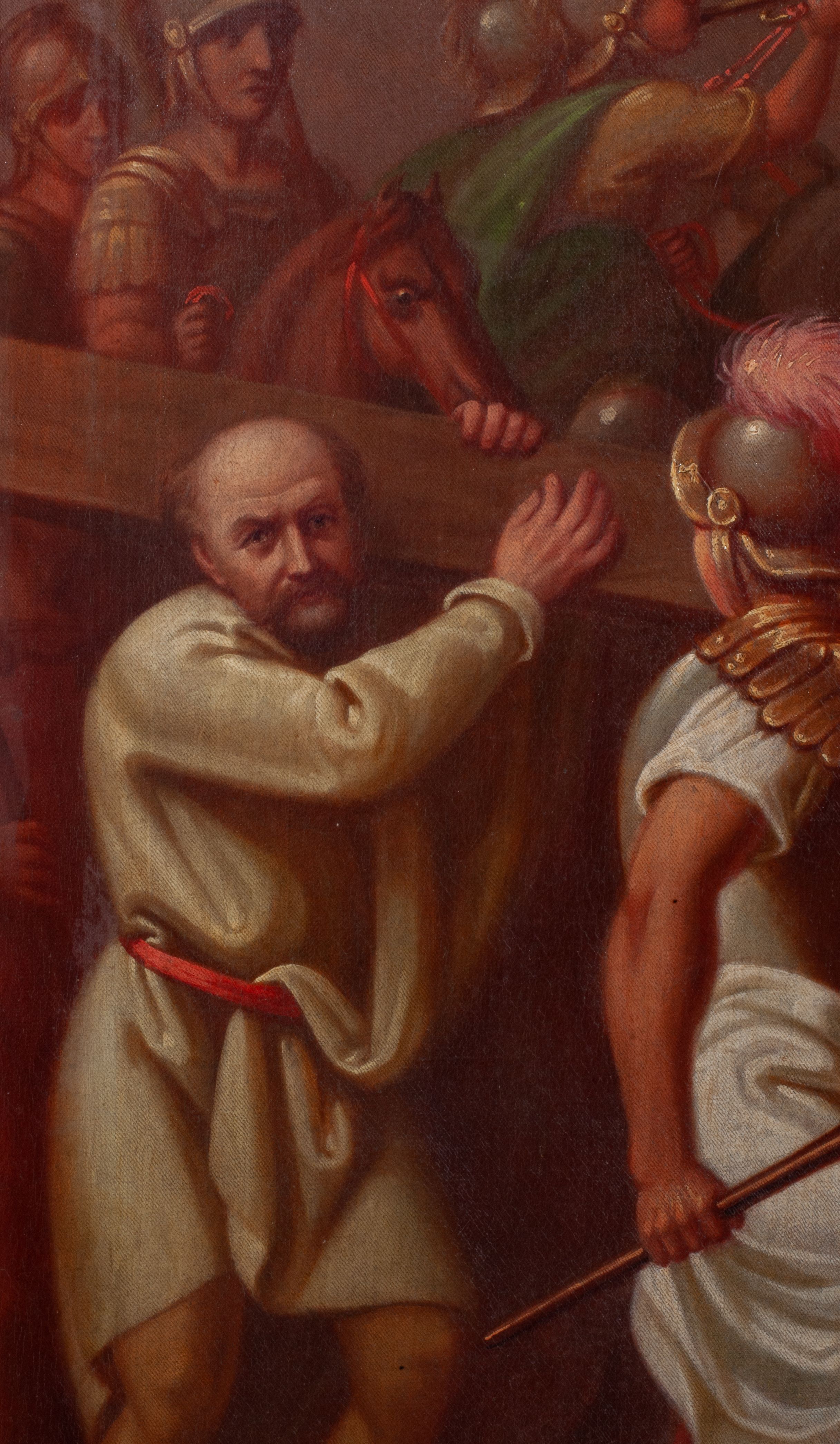 Warstwa malarska pociemniała, spękana, płótno miejscowo zdublowane. Brak stacji XII – Ukrzyżowanie.