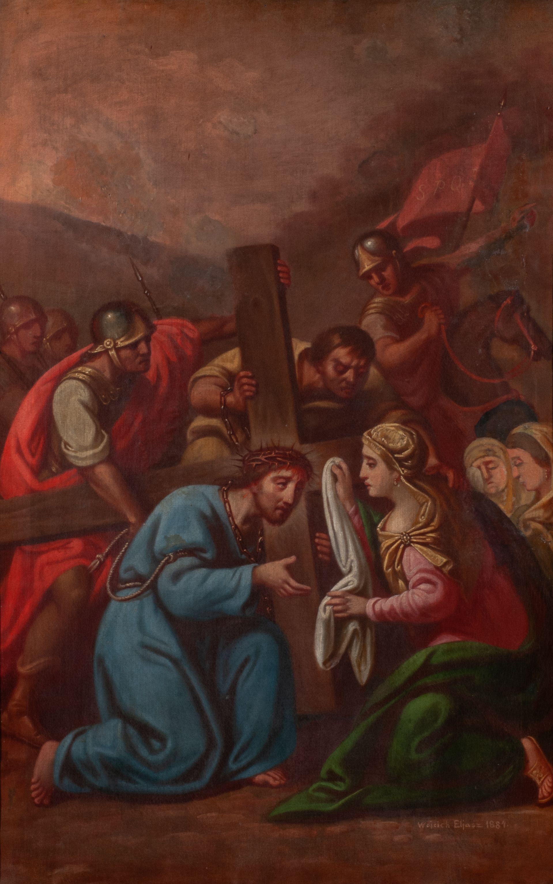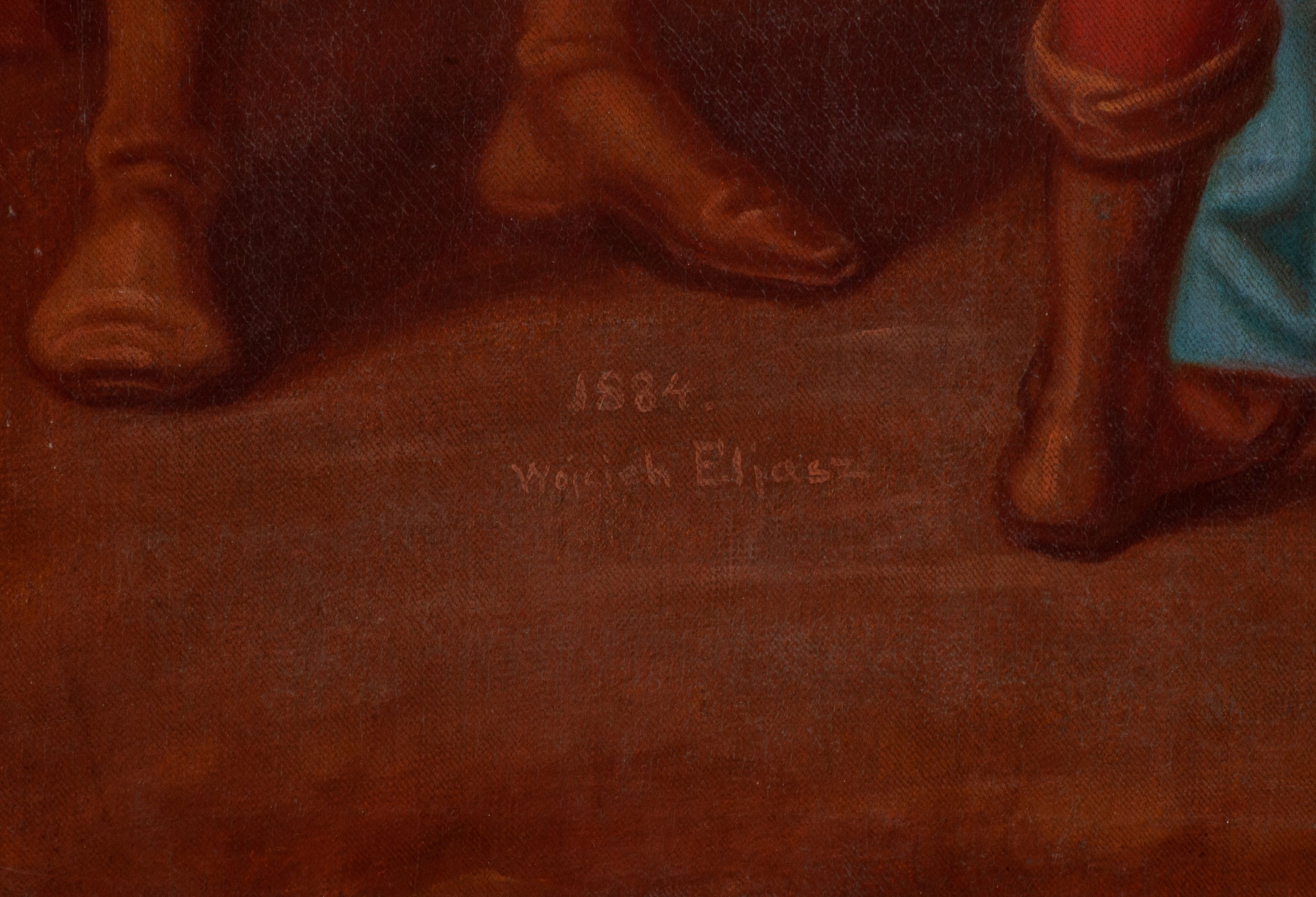 Wojciech Eljasz, autor większości stacji drogi krzyżowej uczył się w krakowskiej Szkole Sztuk Pięknych w latach 1838-1843. Pracował jako nauczyciel rysunku, był również zaangażowany przy restauracji ołtarza Wita Stwosza z kościoła Mariackiego.
