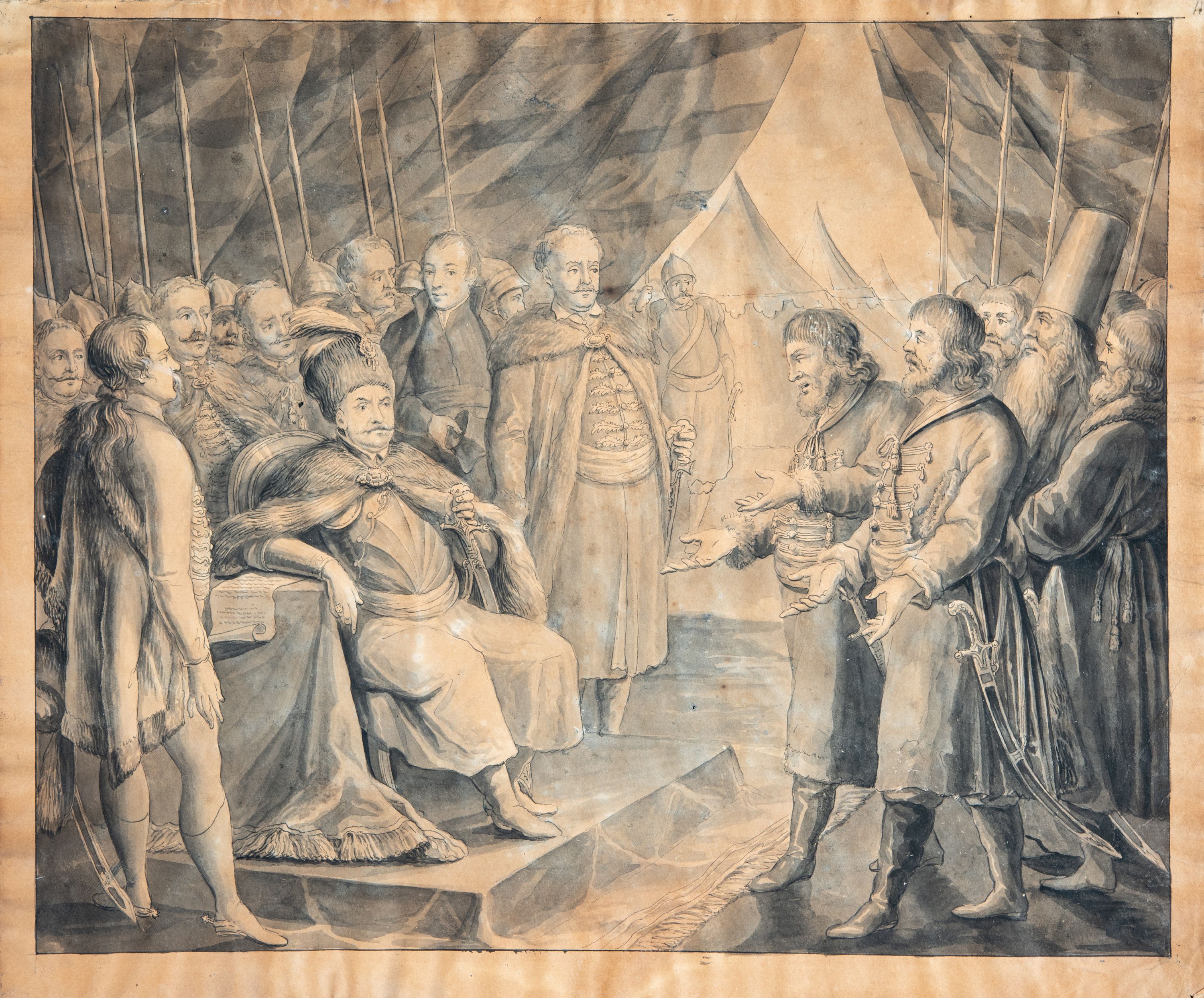 Maria Działo, "Stefan Batory nadaje pokój posłom cara Iwana w 1581 r.", [w:] "Sakralne Dziedzictwo Małopolski", 2025, źródło: https://sdm.upjp2.edu.pl/dziela/stefan-batory-nadaje-pokoj-poslom-cara-iwana-w-1581-r