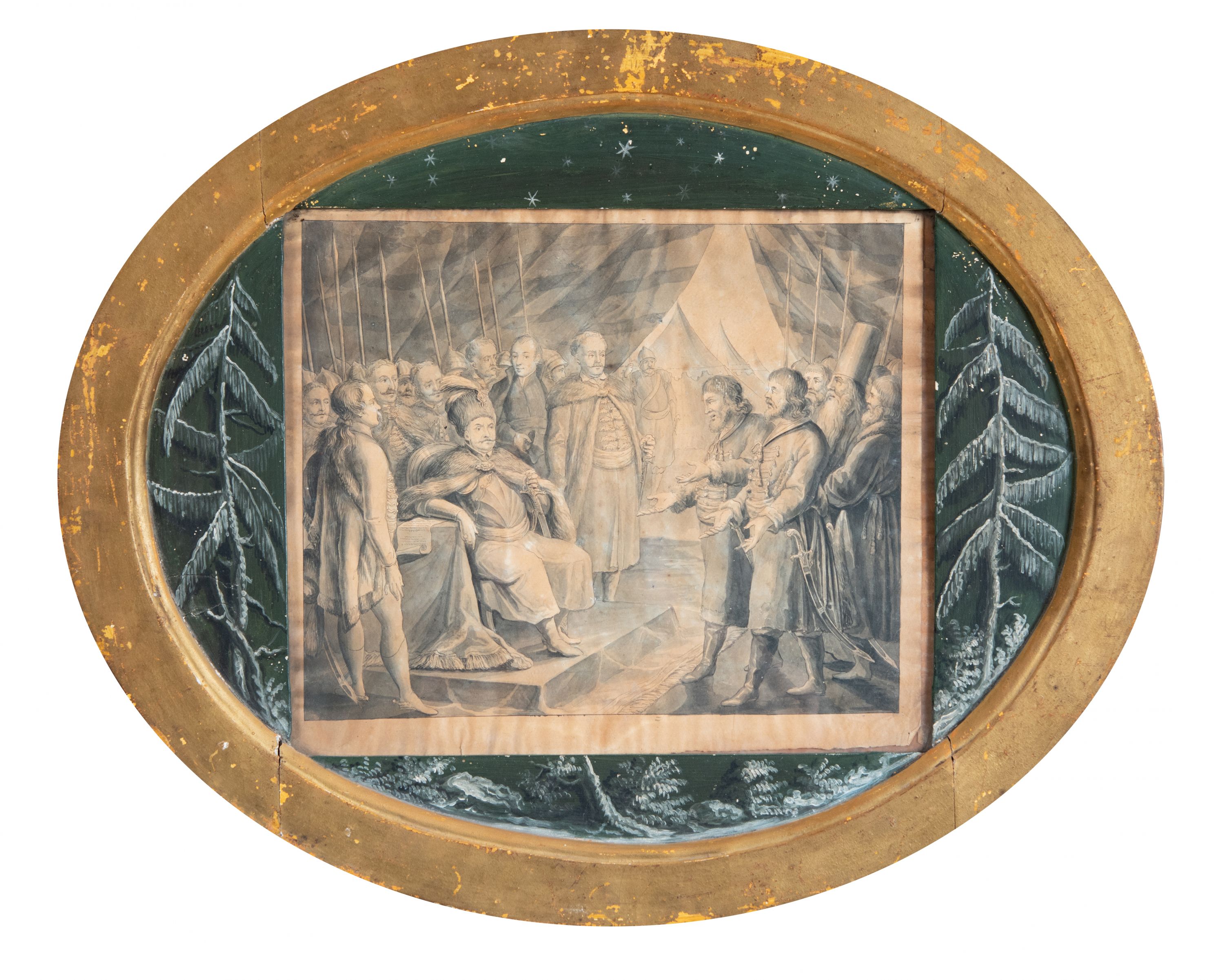Rysunek prawdopodobnie wykonany przez Michała Stachowicza około 1820 roku. Rama z dekoracją malarską Michała Stachowicza wykonana przed 1825 rokiem.