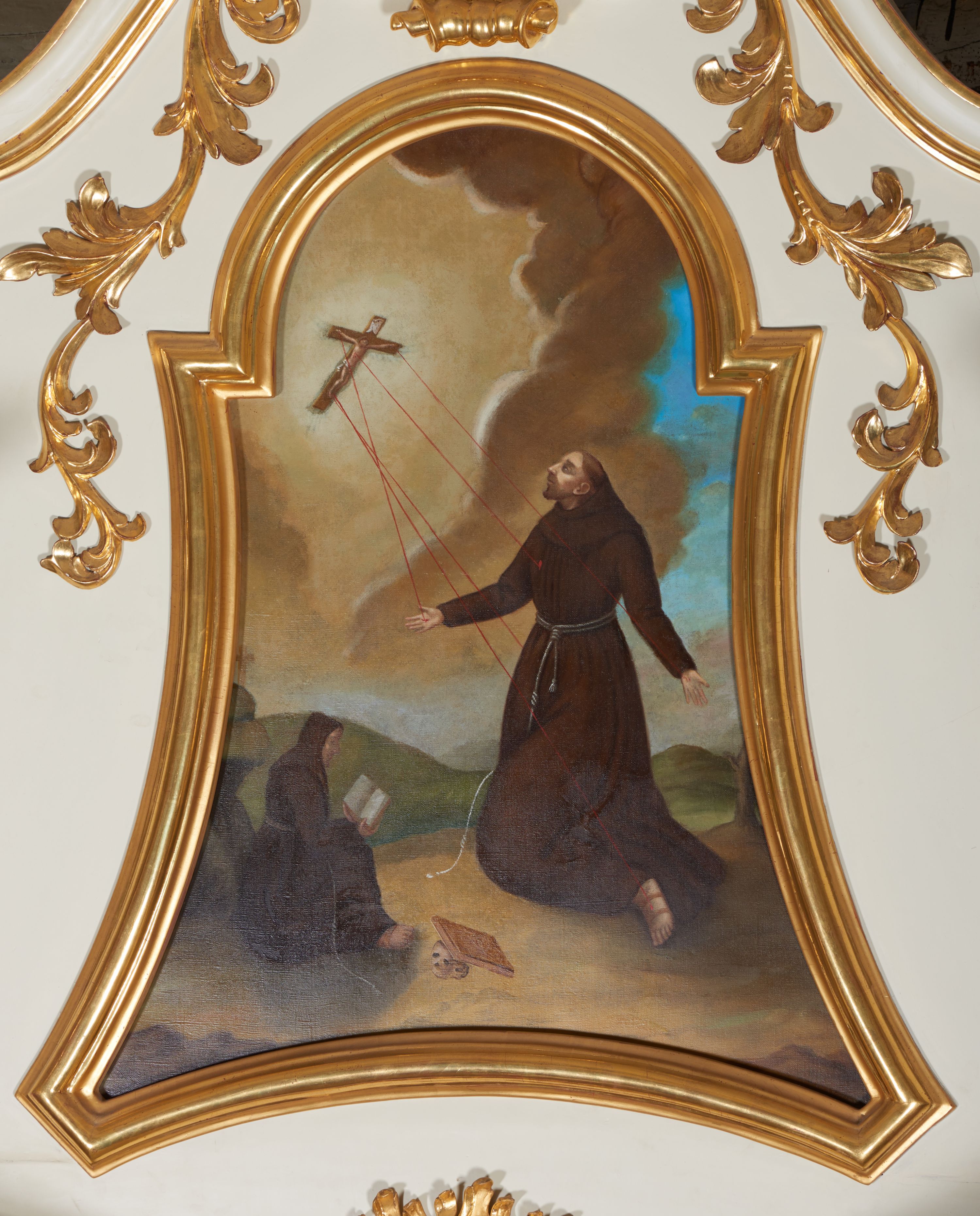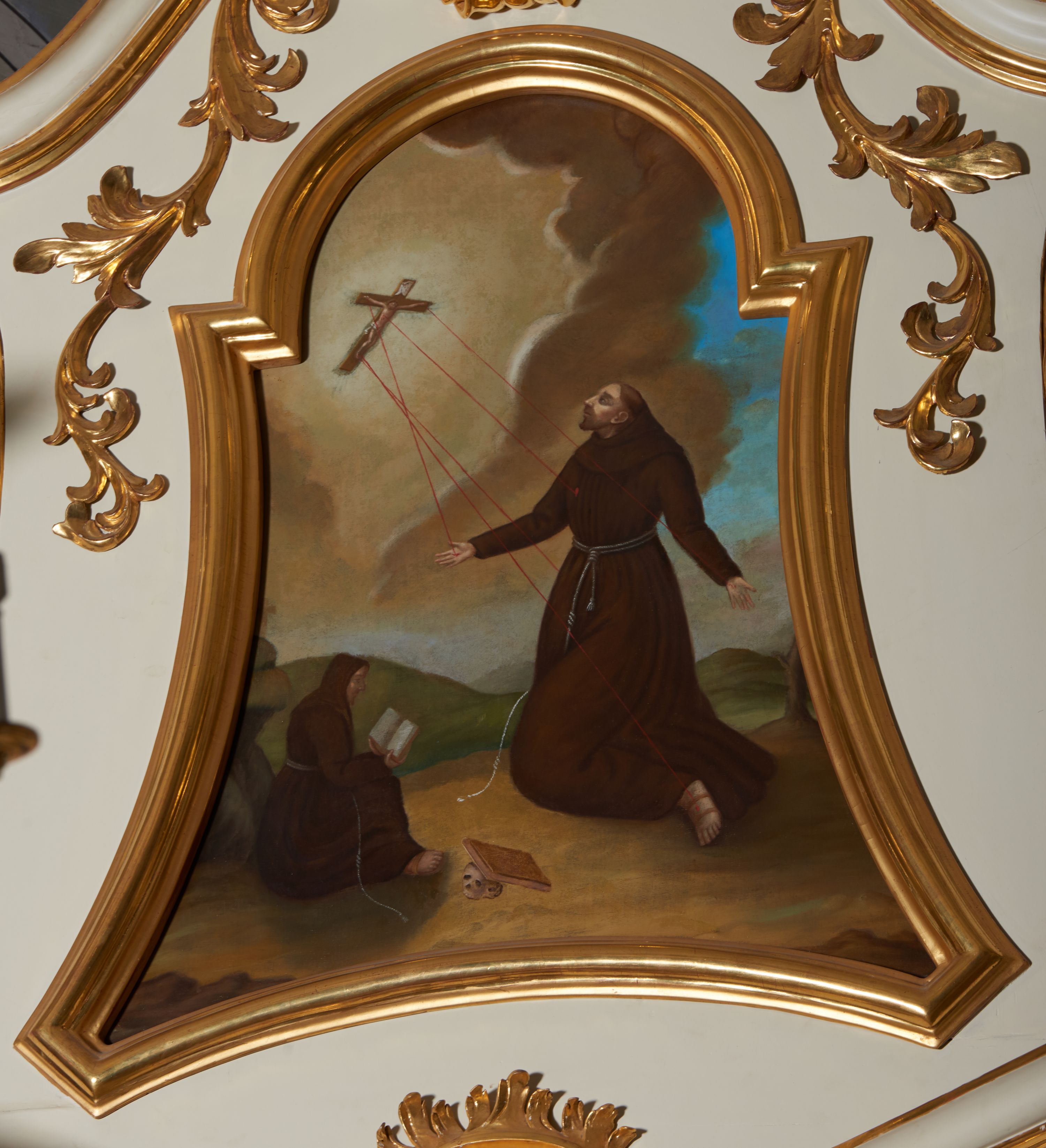 Obraz powstał w XIX wieku. Przedstawia wydarzenie z 1224 roku na górze Alwernii, podczas którego św. Franciszek otrzymał stygmaty. Kompozycyjnie obraz nawiązuje do rozwiązania Angiola di Bondone, zw. Giotto na fresku w kaplicy Scrovegnich w Padwie (ok. 1275-1299).