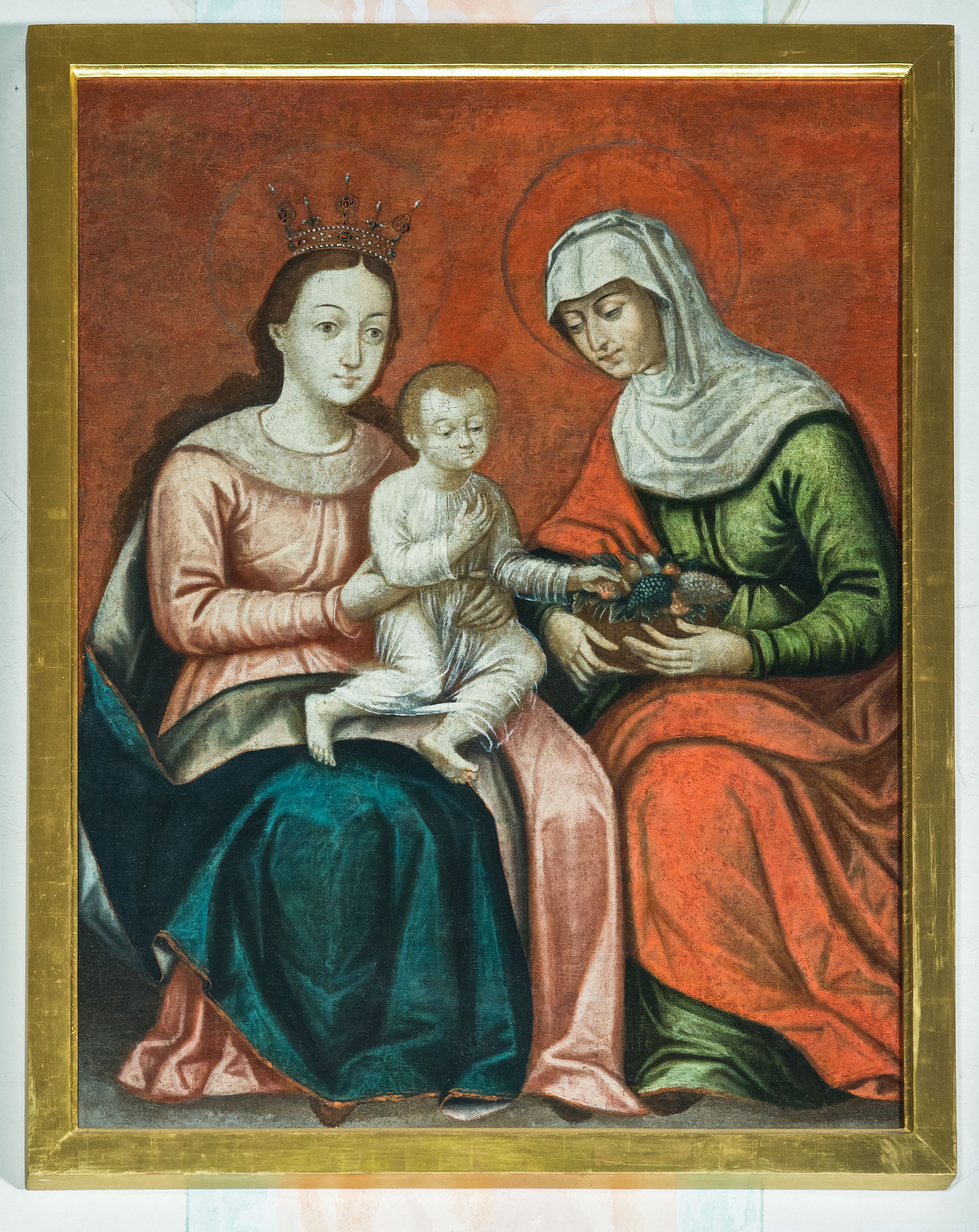 Nieatrybuowany, pochodzący z początku XVII wieku obraz z przedstawieniem św. Anny Samotrzeć, czyli sceną w której Anna została wyobrażona razem ze swoją córką Marią i Dzieciątkiem Jezus, stanowi typowy przykład cechowego malarstwa swego czasu.