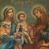 Temat św. Anny Samotrzeć przedstawia trójkę postaci – św. Annę, Marię i małego Jezusa (samotrzeć – we troje). Ewoluował on z wizerunków Rodziny Marii. Te ostatnie ilustrowały przekazy odnoszące się do potrójnego małżeństwa św. Anny z Joachimem, Kleofasem i Salomasem (trinubium), z których to związków święta urodziła trzy córki – Marię, Marię Kleofasową i Marię Salome. W sztukach plastycznych ukazywano tę scenę w taki sposób, że na ławie siedziała zazwyczaj św. Anna i Maria z Jezusem na kolanach, za nimi stali trzej mężowie Anny i mąż Marii – Józef, u dołu ukazano pozostałe córki św. Anny. Wizerunek św. Anny Samotrzeć wyodrębnił się z tych wielofigurowych scen, skupiając się na ich centralnych postaciach. Przedstawienie z Marią i Anną tej samej wielkości, siedzących obok siebie na ławie, bądź fotelach, stanowi jeden z wariantów ukazywania tego tematu w średniowieczu.