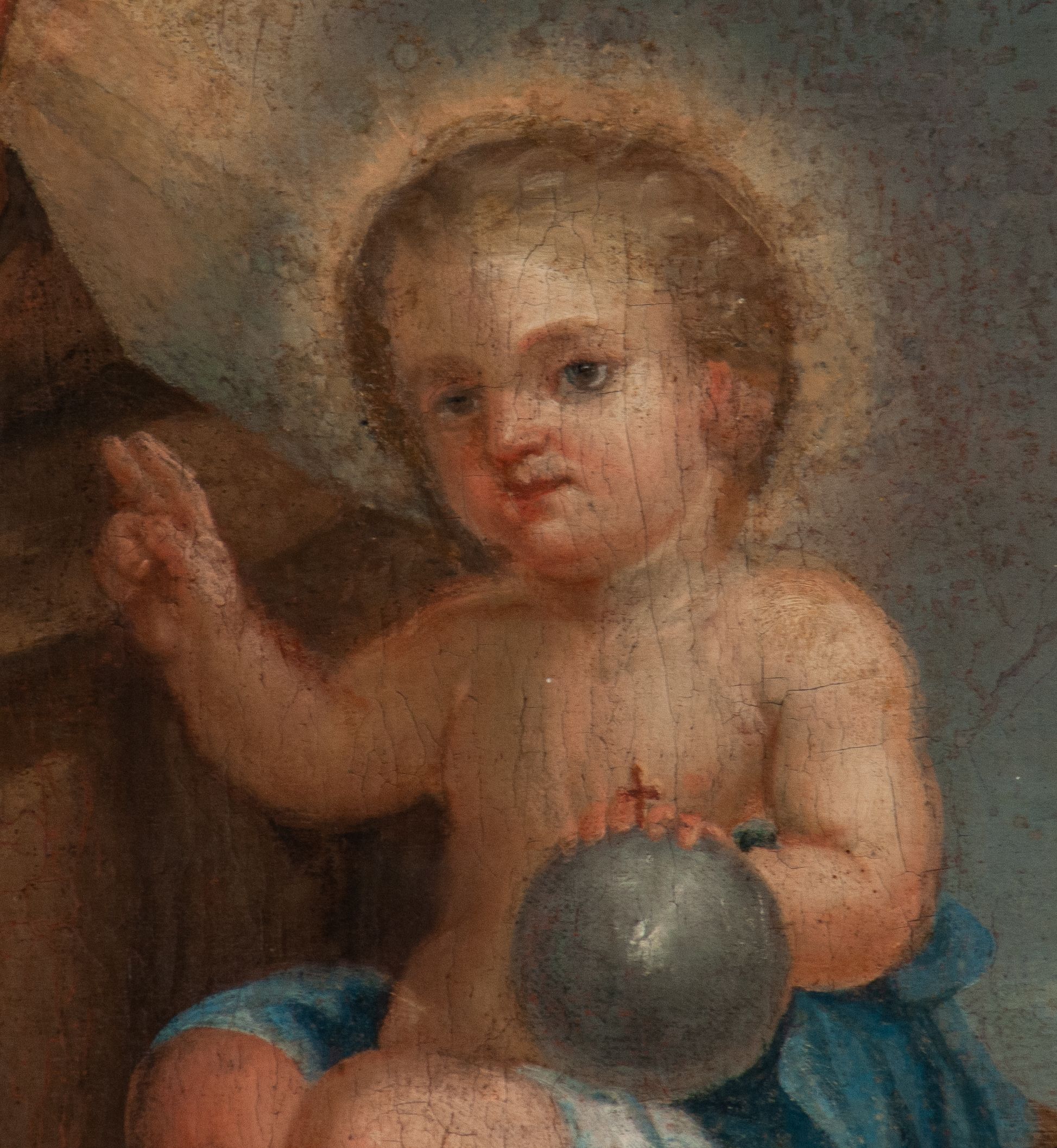Dostateczny, znacznie spękana powierzchnia malarska na całości obrazu, liczne zabrudzenia.