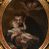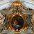 Obraz owalny z przedstawieniem św. Antoniego trzymającego na rękach nagiego Jezusa. Przed nim widoczny fragment nakrytego czerwoną tkaniną stolika z lilią i księgą, tło nieokreślone z parą główek anielskich.