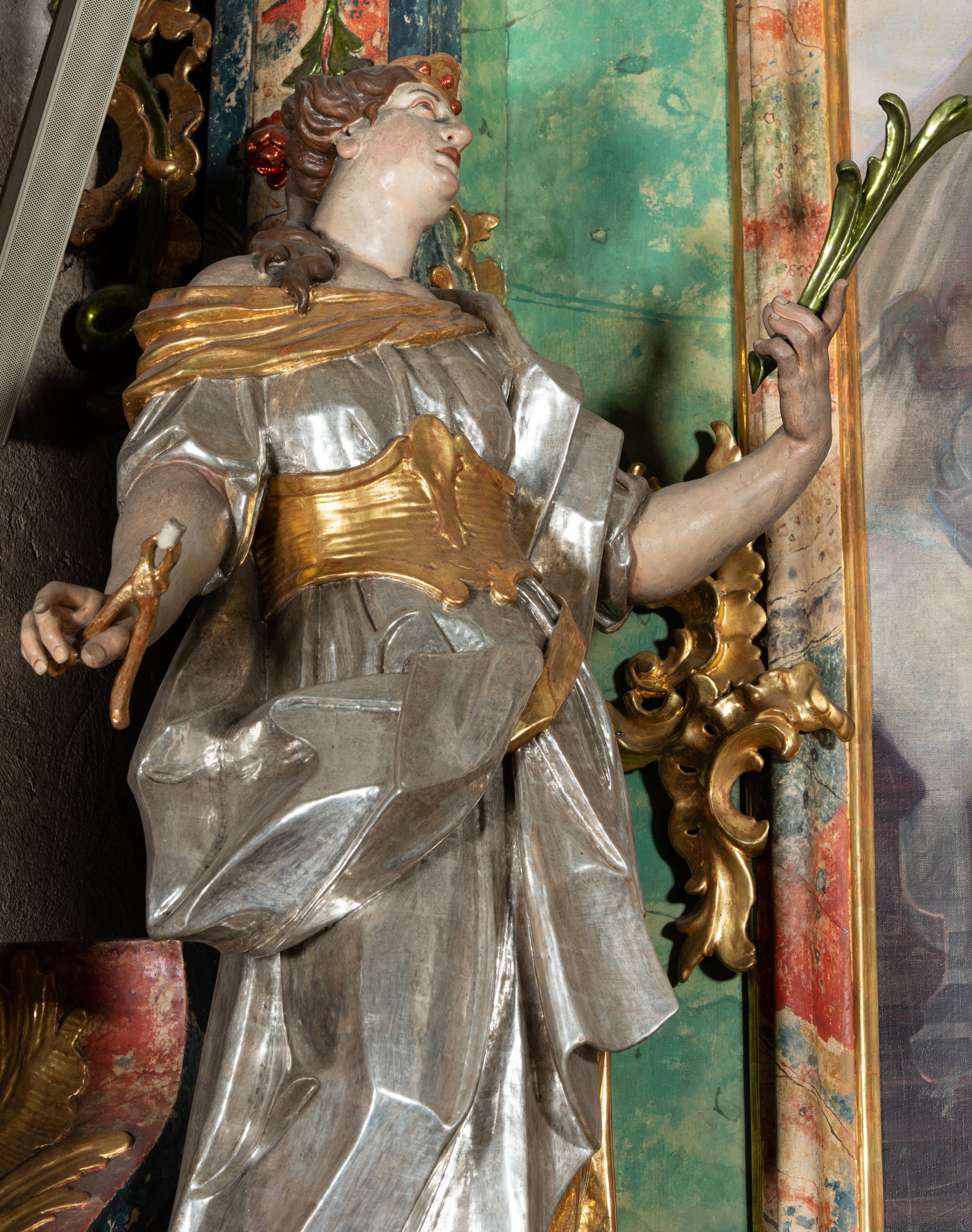 Późnobarokowa rzeźba wykazująca wpływ rzeźby lwowskiej, dzieł Antoniego Osińskiego i Jana Jerzego Pinsla, wykonana przez Johannesa Feega z Kiežmarku.