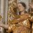 Polichromia w partiach ciała naturalistyczna, szaty i atrybut złocone, chustka srebrzona.