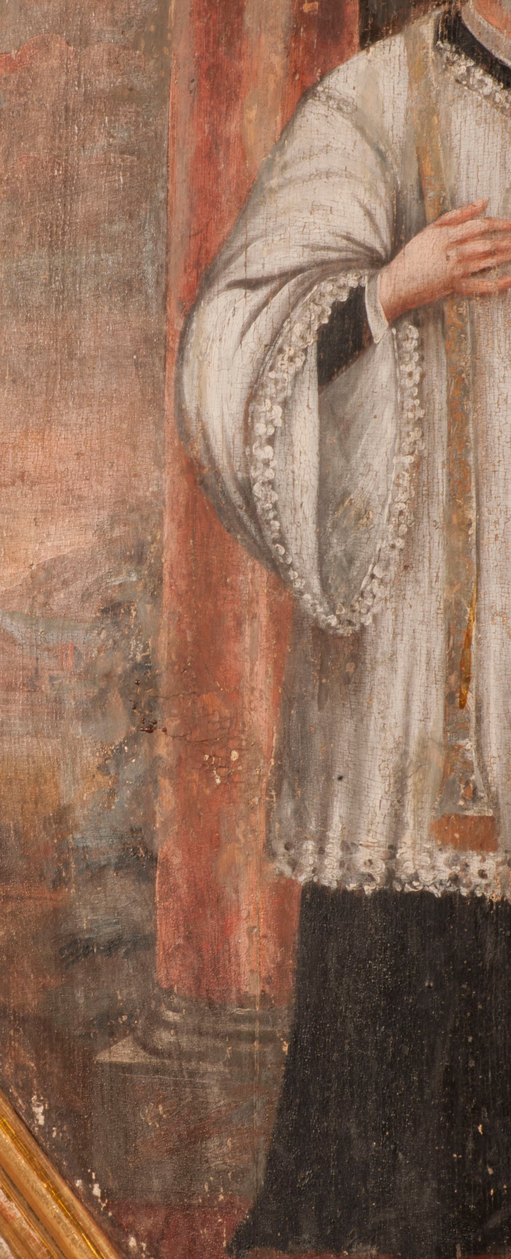 Obraz w wielobocznej ramie z przedstawieniem św. Faustyna przynależy do dekoracji zaplecka stalli ustawionej przy północnej ścianie prezbiterium kościoła w Niepołomicach. Stalle zostały wykonane w 1766 roku, o czym informuje napis na ich boku.