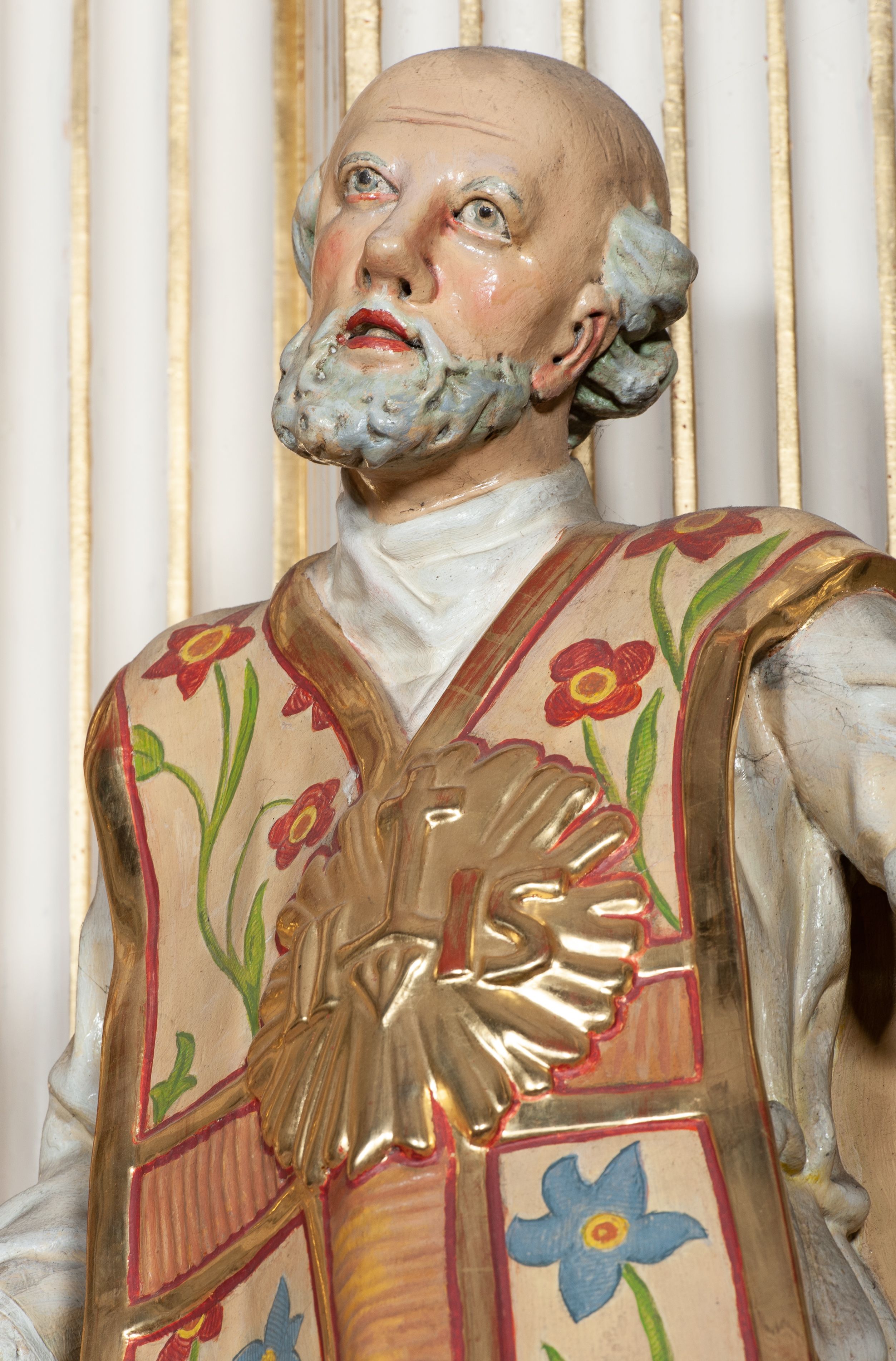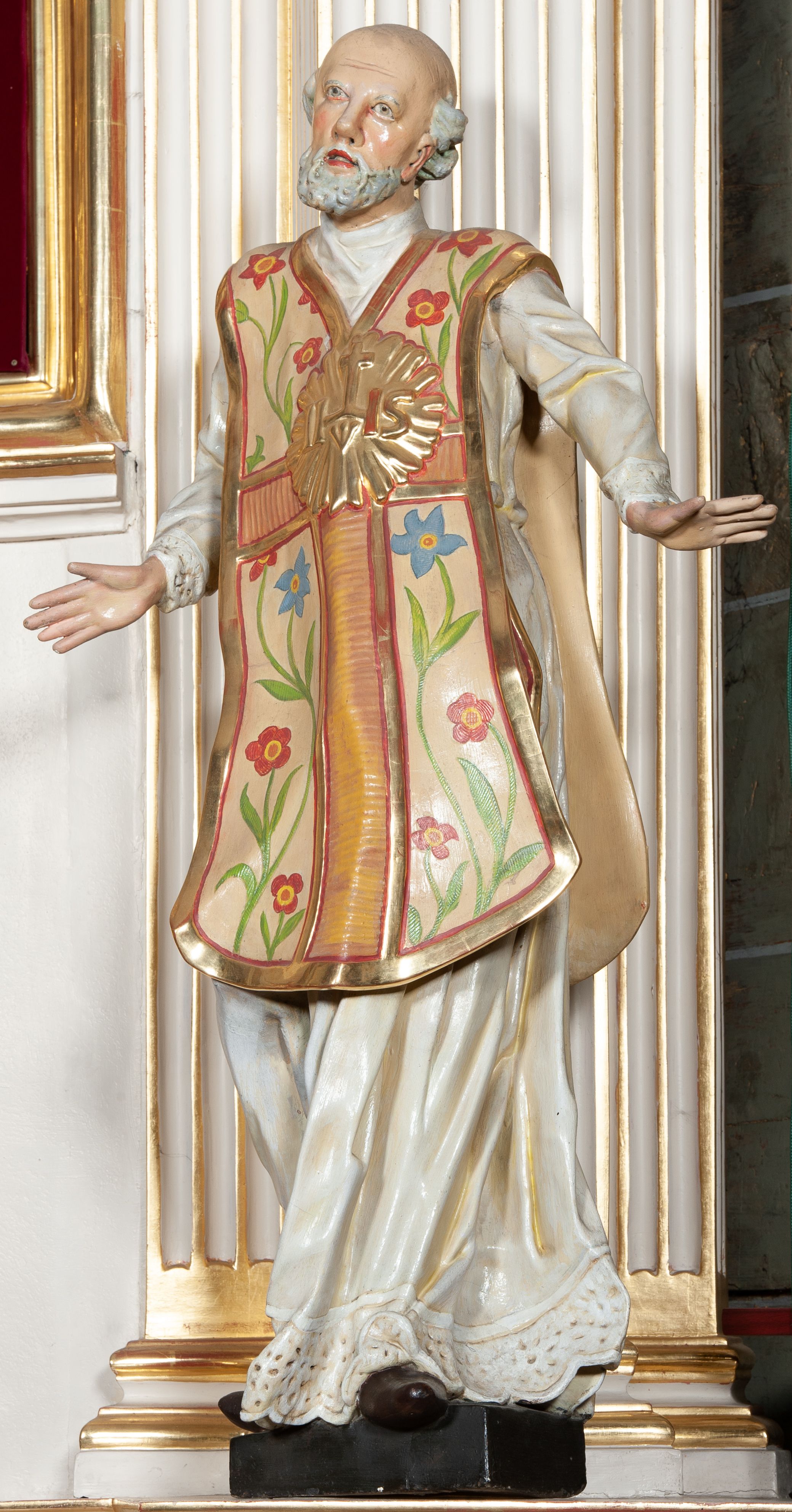 Rzeźba późnobarokowa, tworzy parę z przedstawieniem św. Stanisława Kostki umieszczonym po przeciwległej stronie ołtarza.