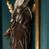 W obszernej literaturze dotyczącej zabytków sztuki w klasztorze oo. Franciszkanów w Wieliczce nazywano omawiane dzieło figurą św. Elżbiety Węgierskiej, a rzeźbę znajdującą się po drugiej stronie ołtarza — figurą św. Ludwika IX. Jedynie wzmiankowana ustna tradycja zakonna przypisuje te dzieła do postaci innych świętych: św. Jadwigi Śląskiej oraz św. Kazimierza Królewicza. I choć pierwsza interpretacja wydaje się być słuszna — oboje święci należeli do III zakonu franciszkańskiego (tercjańskiego), to jednak wykorzystane atrybuty ikonograficzne zdecydowanie przeczą temu przekonaniu. Figura świętej ma bose stopy, a w prawym ręku trzyma buty. W ten sposób w ikonografii ukazywana jest św. Jadwiga Śląska, żona Henryka Brodatego, fundatorka wielu kościołów, która resztę życia po śmierci męża i dzieci spędziła jako cysterka w klasztorze w Trzebnicy. Zasłynęła z pobożności i czynów miłosierdzia. Wyczerpana surowym życiem mniszki, chociaż nie składała ślubów, zmarła 15 października 1243 i jest ukazywana w ikonografii w stroju cysterki. Podobnie domniemany św. Ludwik IX, król francuski, który zwykle przedstawiany jest w stroju królewskim zdobionym liliami andegaweńskimi i w koronie królewskiej lub cierniowej na głowie w dziele z klasztoru w Wieliczce bardziej odpowiada postaci św. Kazimierza Królewicza: ma książęcą mitrę na głowie i delię karmazynową aksamitną z gronostajami, a także polskie buty z wysokimi cholewami. Niestety źródła archiwalne nie ujawniły autora rzeźby.