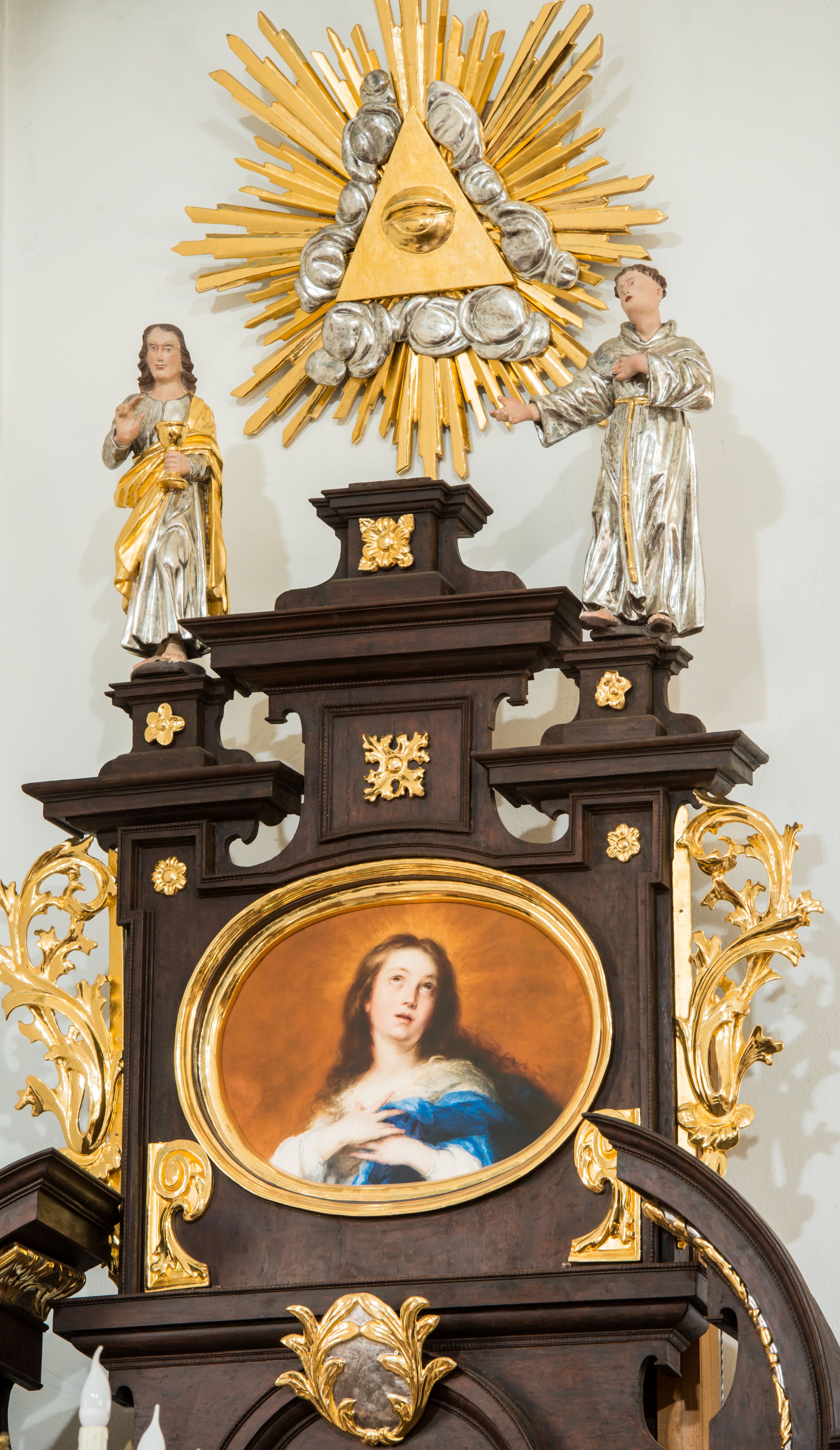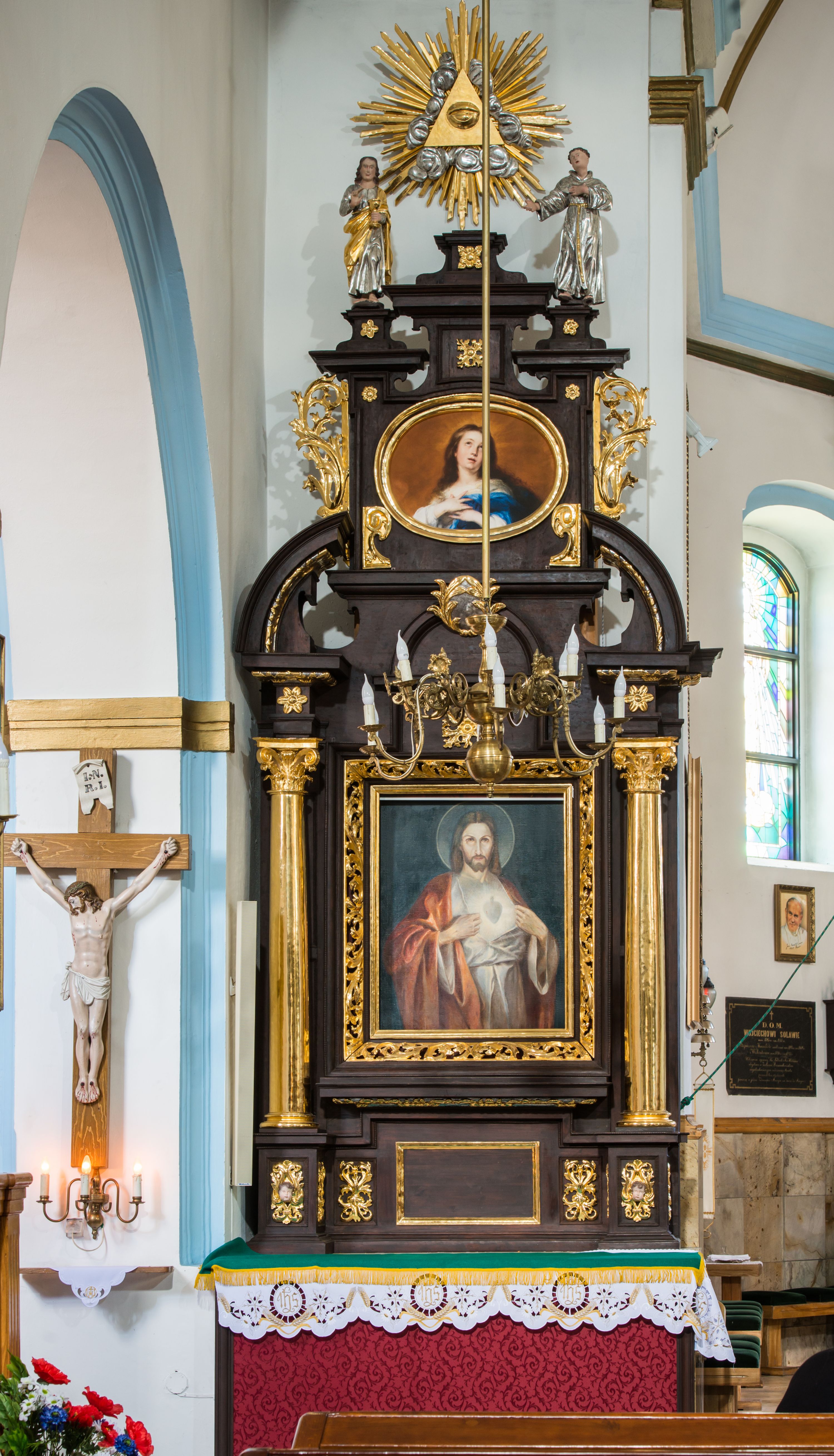 Ołtarz boczny dekoruje figura św. Jana Ewangelisty, który został ukazany w nietypowym ujęciu, czyniąc znak krzyża nad kielichem zatrutego wina. Forma rzeźby jest osadzona w tradycji baroku, o czym przede wszystkim świadczy charakterystyczny układ fałdów szat.