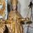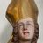 Figura ścięta z tyłu, ustawiona jest na obłoku, ukazana frontalnie z głową skierowaną w prawo, w kontrapoście, o esowato wygiętej sylwetce, z rękami rozłożonymi na boki, w lewej trzyma pastorał. Twarz ma owalną, pełną, o oczach wzniesionych w górę, ustach lekko rozchylonych, okoloną falowanymi, sięgającymi ramion włosami. Święty ubrany jest w strój biskupi: albę, rokietę i mucet, na szyi ma zawieszony pektorał, na dłoniach rękawiczki, a na głowie infułę. Ramiona okrywa kapa spięta na piersi, z rozwianą na prawy bok fałdą. Po lewej stronie świętego niewielka, klęcząca postać kalekiego mężczyzny, wspierającego się lewą ręką na kulach, z wyciągniętą ku górze prawą ręką. Polichromia naturalistyczna w partiach ciała, szaty i atrybuty pozłacane.