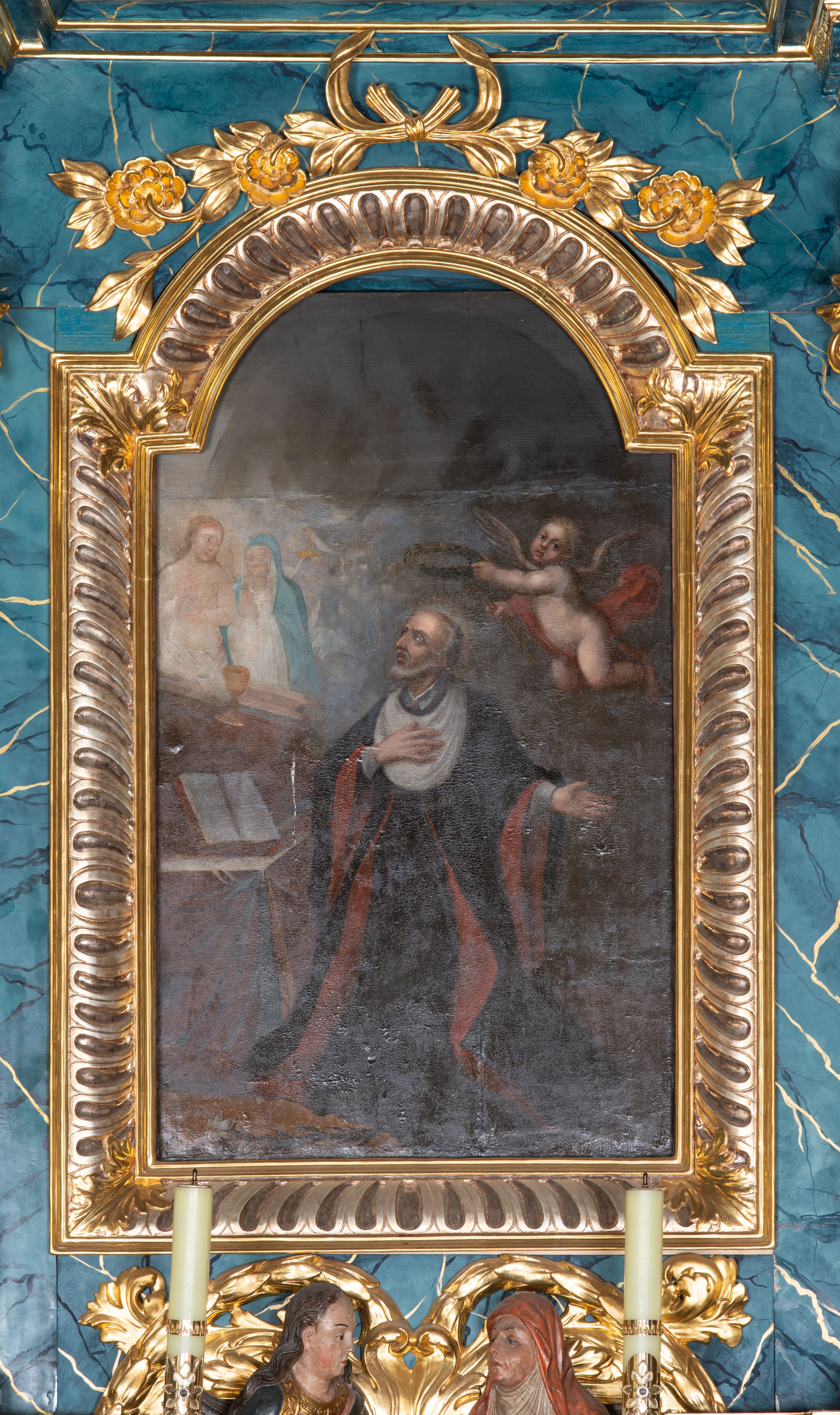 Osiemnastowieczny wizerunek św. Jana Kantego został odnowiony w 1838 roku przez malarza cechowego z Myślenic, Sebastiana Stolarskiego, jak zostało napisane na odwrociu obrazu: „za bytności starszych Marcina Szymskiego u Jana Kursznera”. Kolejną renowację wykonał w listopadzie 1945 roku P. Szymski.