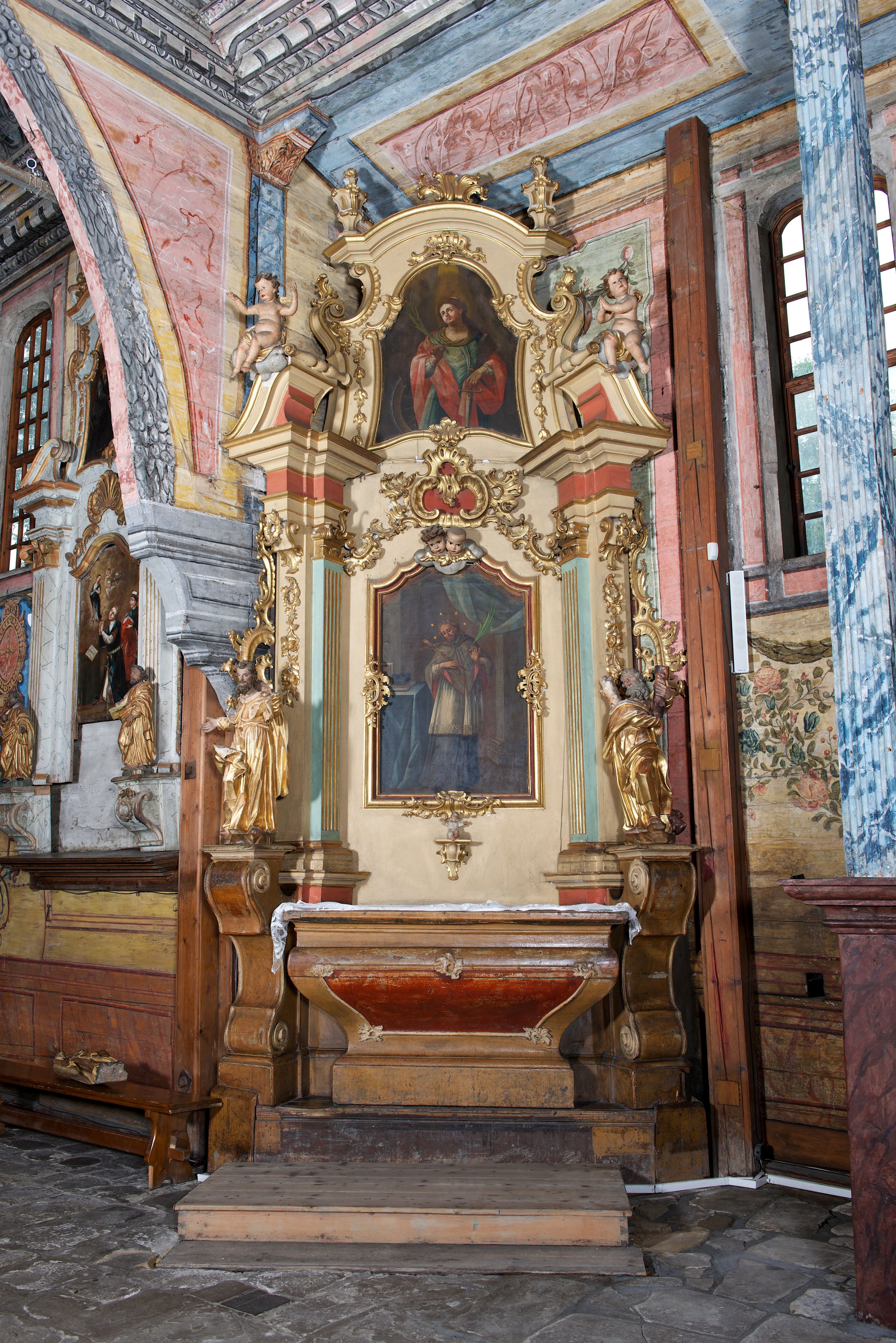 Obraz św. Jana Nepomucena został wykonany w 1778 roku z przeznaczeniem do zwieńczenia ołtarza, w związku z modernizacją świątyni zainicjowaną przez proboszcza Andrzeja Antałkiewicza. Obraz mógł wykonać malarz krakowski, Kazimierz Mołodziński.