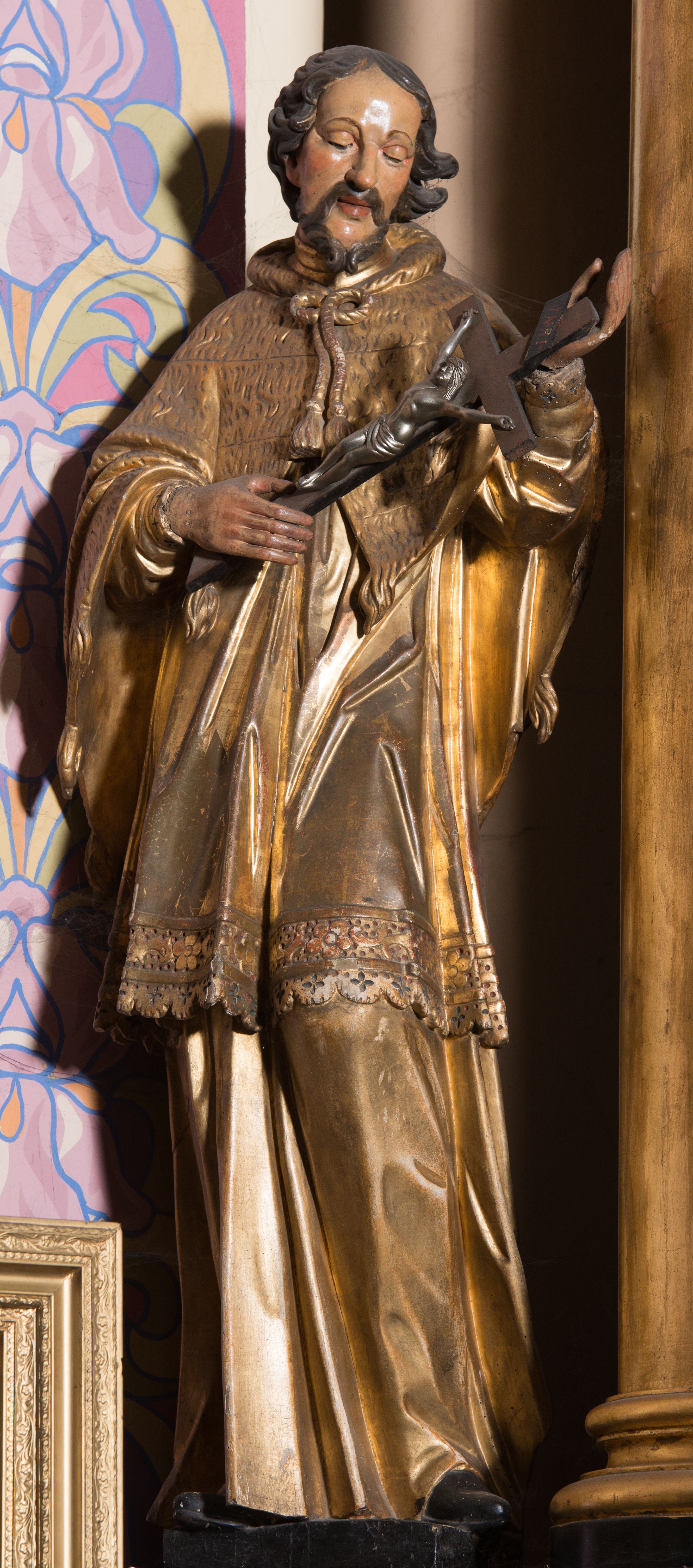 Dzieło anonimowego snycerza prawdopodobnie współpracującego z architektem Francesco Placidim, hipotetycznym autorem projektu. Figura wprawdzie wykazuje podobieństwa do rzeźb z sąsiedniego ołtarza w tym samym kościele, ale poziom jej wykonania jest o wiele słabszy, wskazujący na mniej uzdolnionego członka tego samego, jak się wydaje, warsztatu wykonującego omawiane ołtarze.