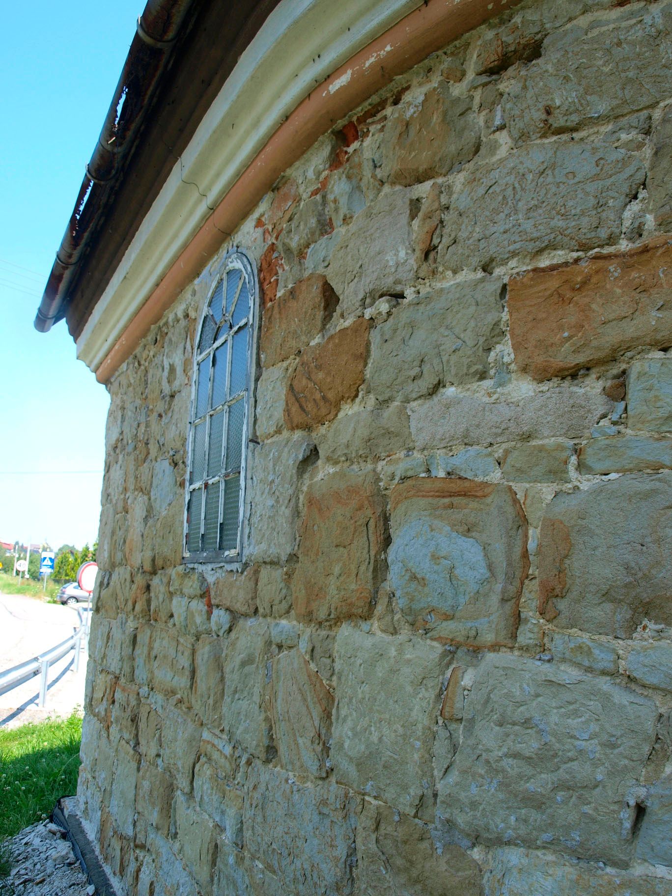 Jest to kapliczka w typie domkowym, który zwykle wykonywali sami fundatorzy lub zatrudnieni przez nich miejscowi rzemieślnicy. Umieszczono w niej dwie figury: Matkę Boską oraz św. Jana Nepomucena. Motywy mariologiczne w przydrożnych kapliczkach Polski południowej są drugim pod względem częstotliwości występowania po przedstawieniach chrystologicznych. Z kolei pośród ikonografii hagiograficznej niezwykle popularna była osoba św. Jana Nepomucena. Święty był kanonikiem kolegiaty św. Idziego w Pradze, dlatego zwykle przedstawiany jest w stroju odpowiadającym tej godności. Najczęściej ukazywany jest jako adorujący krucyfiks trzymany w ręku i z palmą męczeństwa w drugiej. Od początku czczono go jako patrona dobrej sławy, spowiedzi, mostów i tonących. Dlatego też umieszczano go w przydrożnych kapliczkach, aby chronił miejscowość przed powodziami, a jej mieszkańców przed utonięciami.