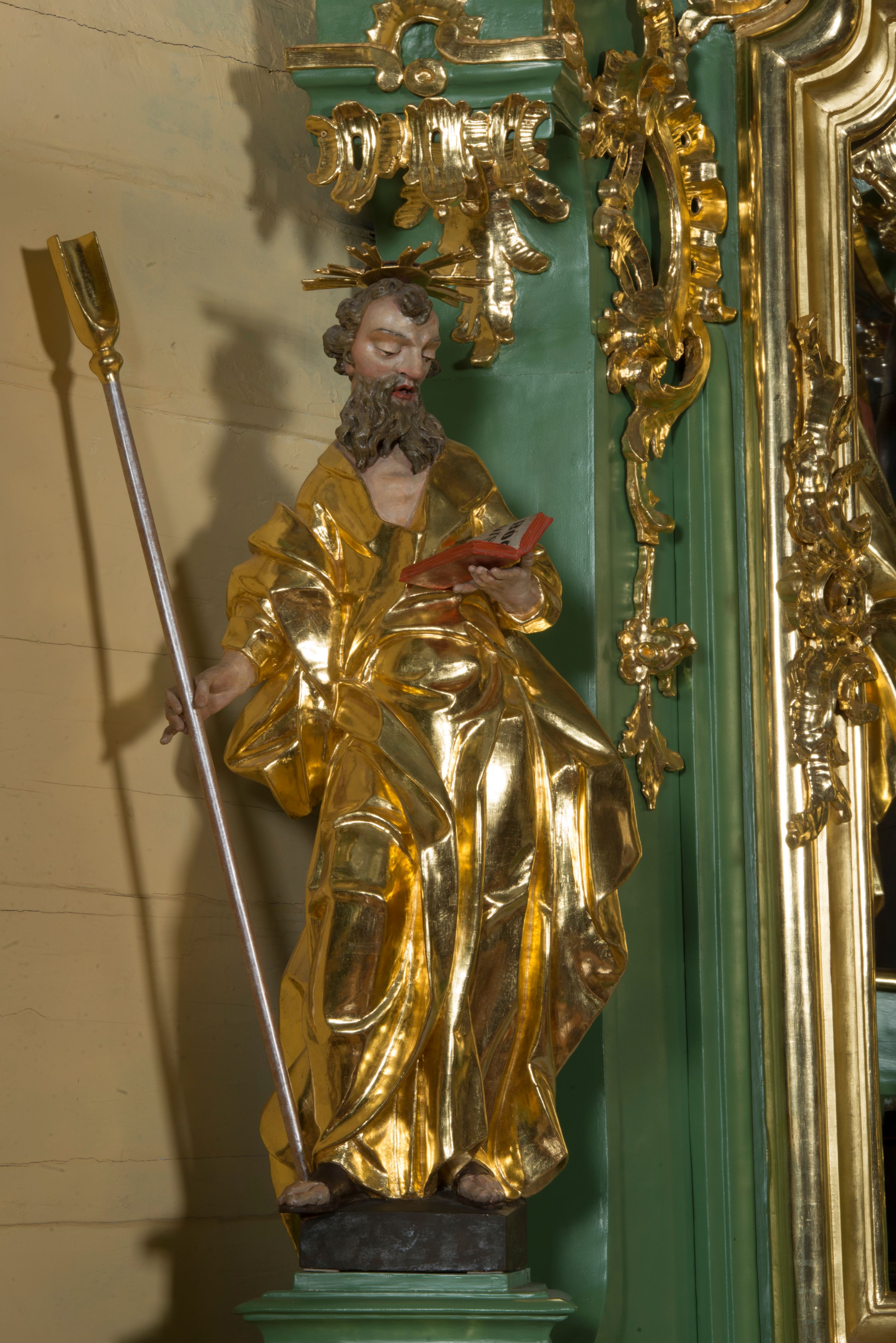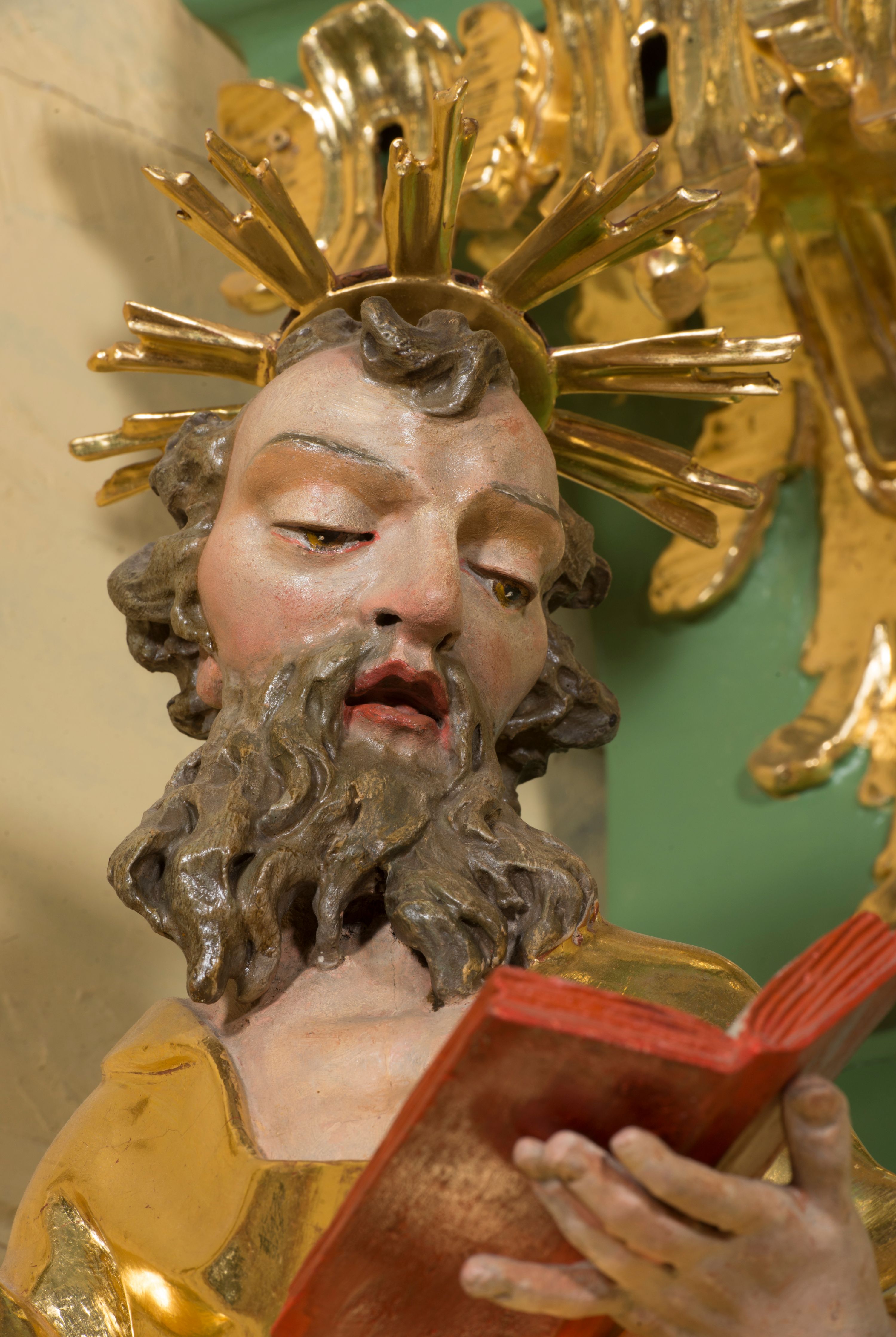 Znany z nazwiska autor dzieła, Johann Feeg, był późnobarokowym kieżmarskim rzeźbiarzem. Tworzone przez niego postacie charakteryzują eleganckie pozy i gesty, ostro załamujące się fałdy szat, ostre rysy twarzy o zapadniętych policzkach, dużych nosach i głęboko osadzonych oczach o migdałowym wykroju. Ołtarze z rzeźbami jego autorstwa znajdują się również w kieżmarskim kościele Paulinów, w kościołach w Wierzbowie, Lewoczy i Popradzie Wielkiej.