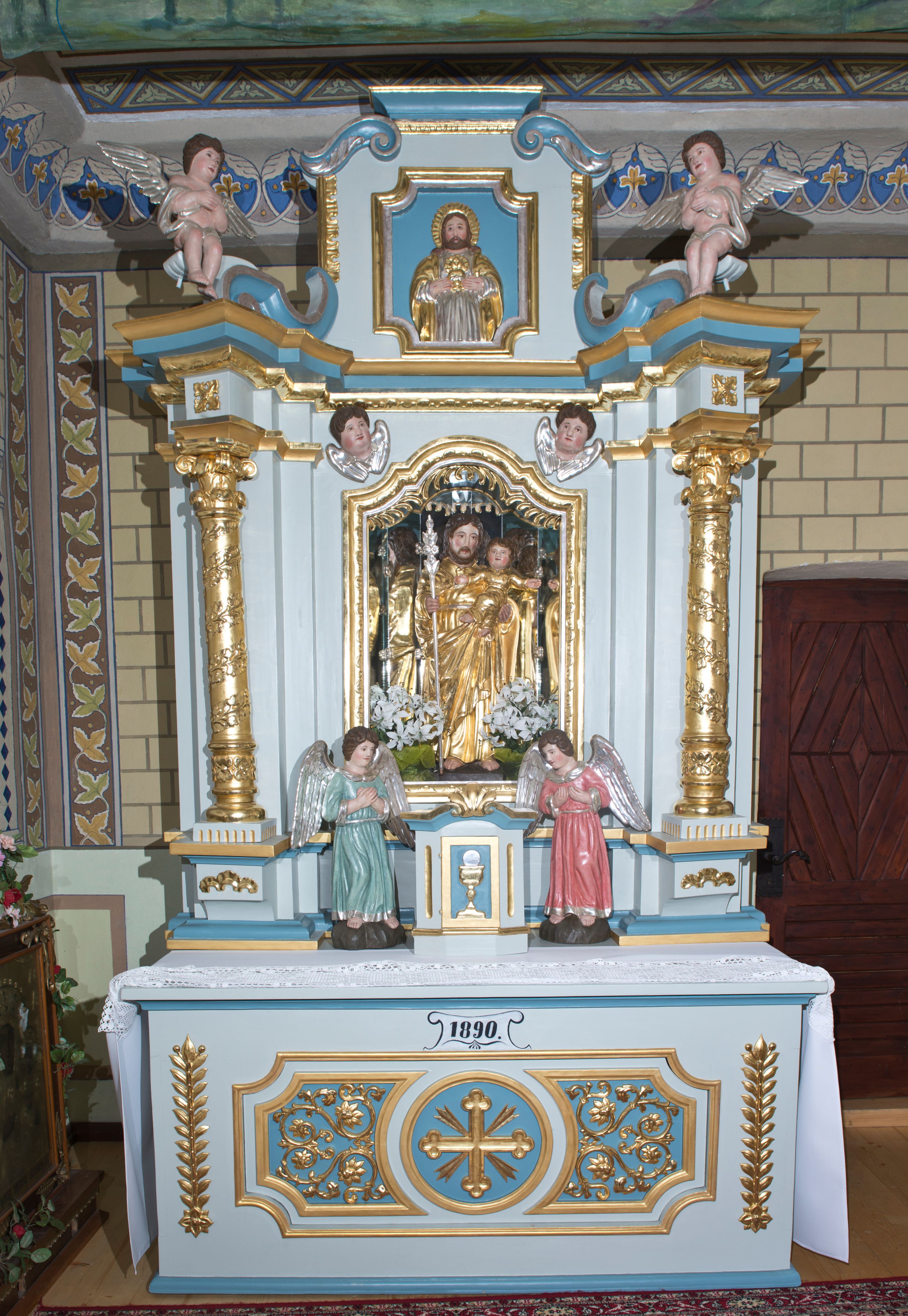 Figura św. Józefa w niszy ołtarza bocznej kaplicy jurgowskiego kościoła została wykonana w 1890 roku przez rzeźbiarza-samouka Wojciecha Kułacha „Wawrzyńcoka” z Gliczarowa. Sposób kształtowania postaci nawiązuje do rzeźb pozostałych ołtarzy kościoła, jednak schematyzm twarzy zdradza ludowe korzenie twórczości artysty.