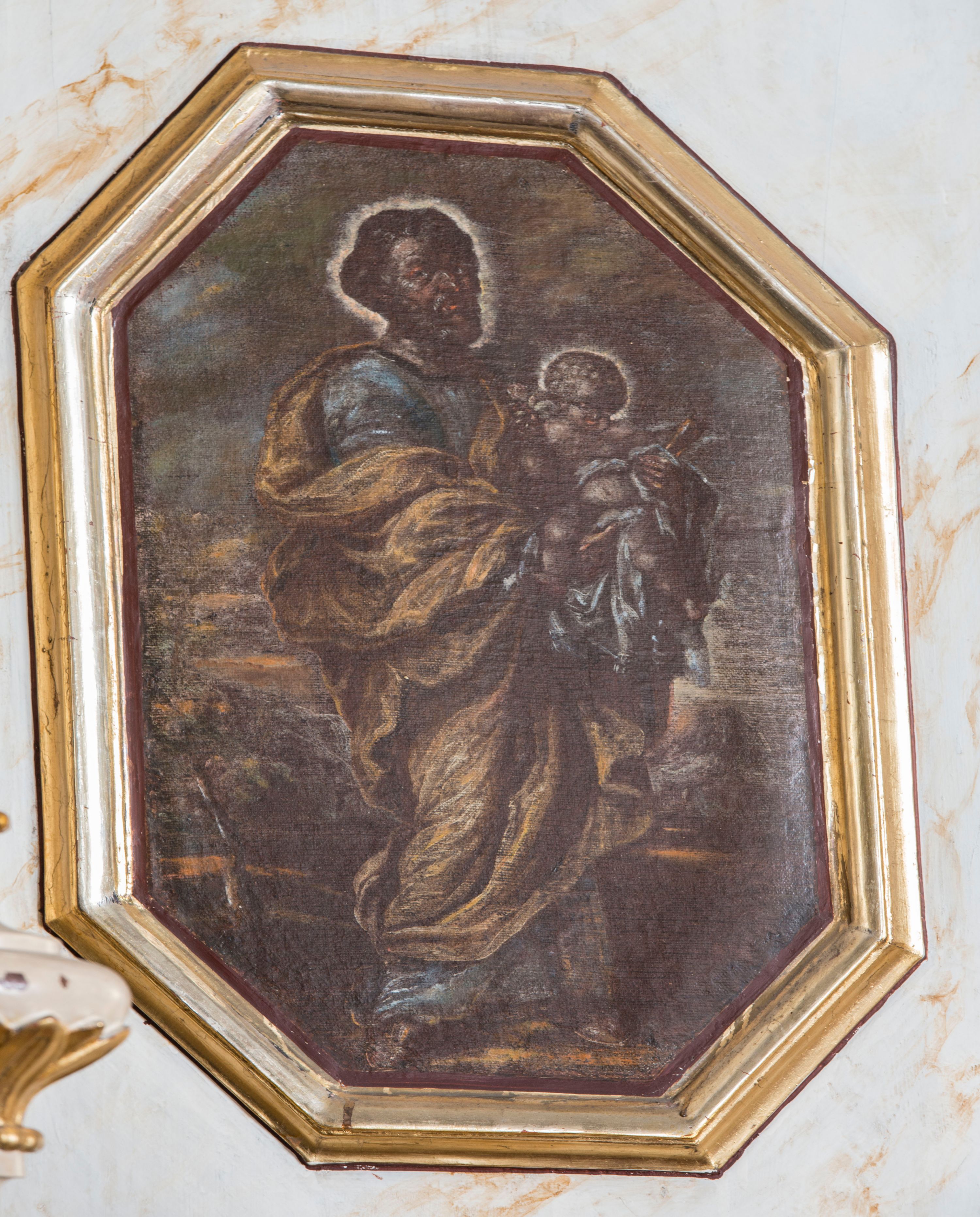 Święty Józef był oblubieńcem Marii i opiekunem Jezusa, dlatego przedstawiany jest razem z Dzieciątkiem. Ukazywany jest jako dojrzały mężczyzna lub starzec.