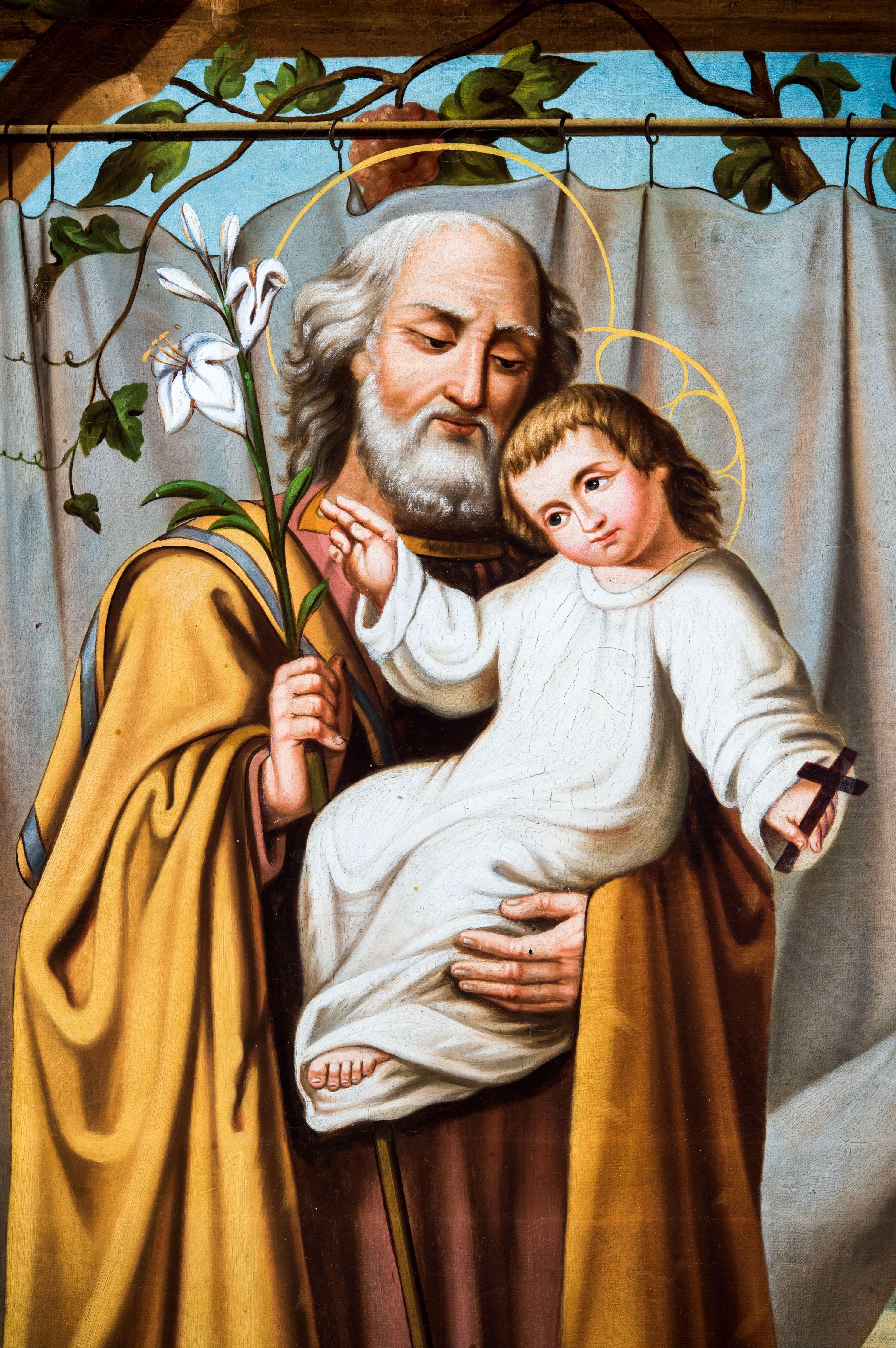Obraz św. Józefa z Dzieciątkiem z około połowy XIX wieku najprawdopodobniej pierwotnie był umieszczony na zasuwie w którymś z ołtarzy bocznych w starym kościele, a po wybudowaniu nowego przeniesiono go do jego wnętrza. W wizerunku powstałym w oparciu o stare zasady ikonograficzne wyraźnie widoczny jest wpływ religijnego malarstwa dziewiętnastowiecznego z kręgu bawarskiego i austriackiego.