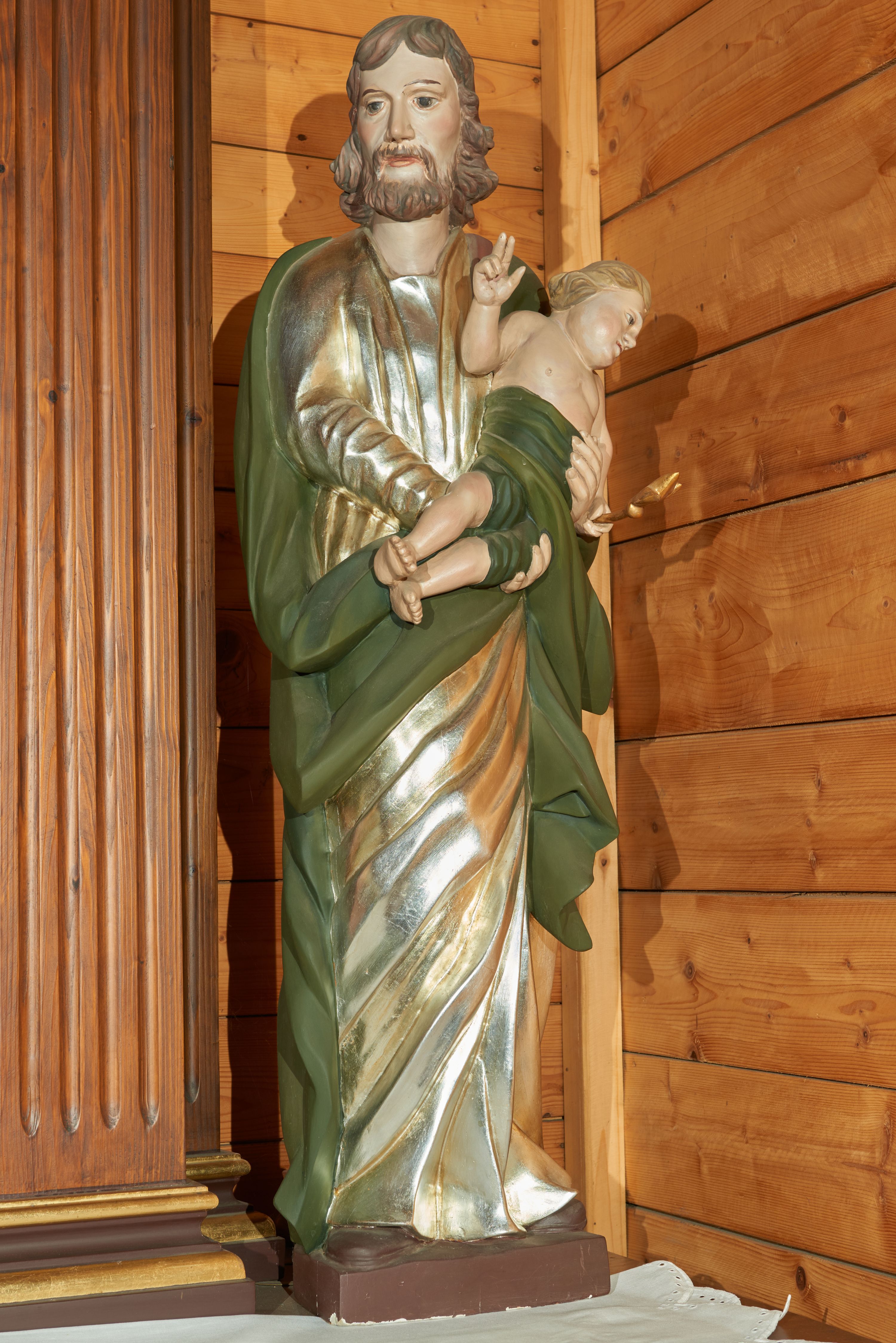 Święty Józef był oblubieńcem Marii i opiekunem Chrystusa. Przedstawiany jest jako starszy mężczyzna z Dzieciątkiem Jezus. Jego atrybutem jest lilia, gdyż żył w czystości.