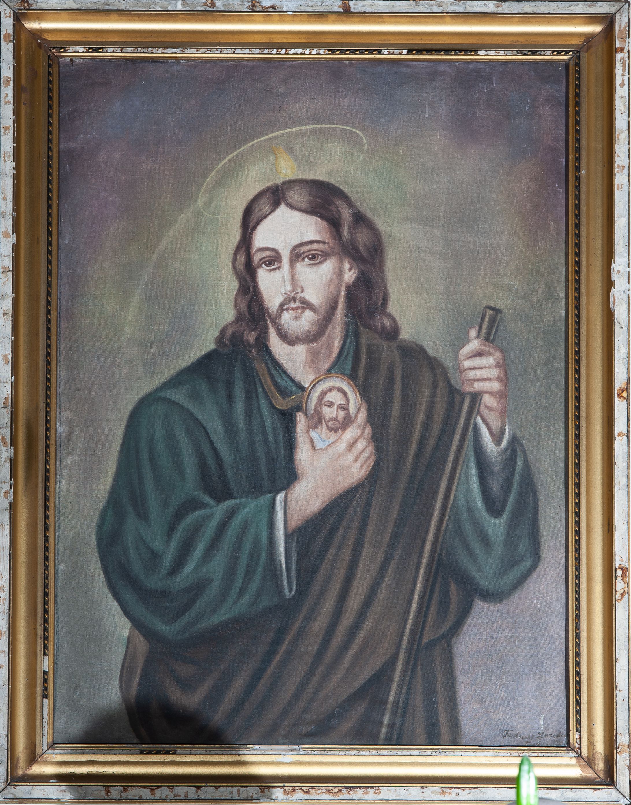 Obraz malowany olejno na płótnie, w profilowanej złoconej ramie, z przedstawieniem św. Judy Tadeusza. Dzieło malarza Tadeusza Seroki, powstałe w pierwszej połowie XX wieku.
