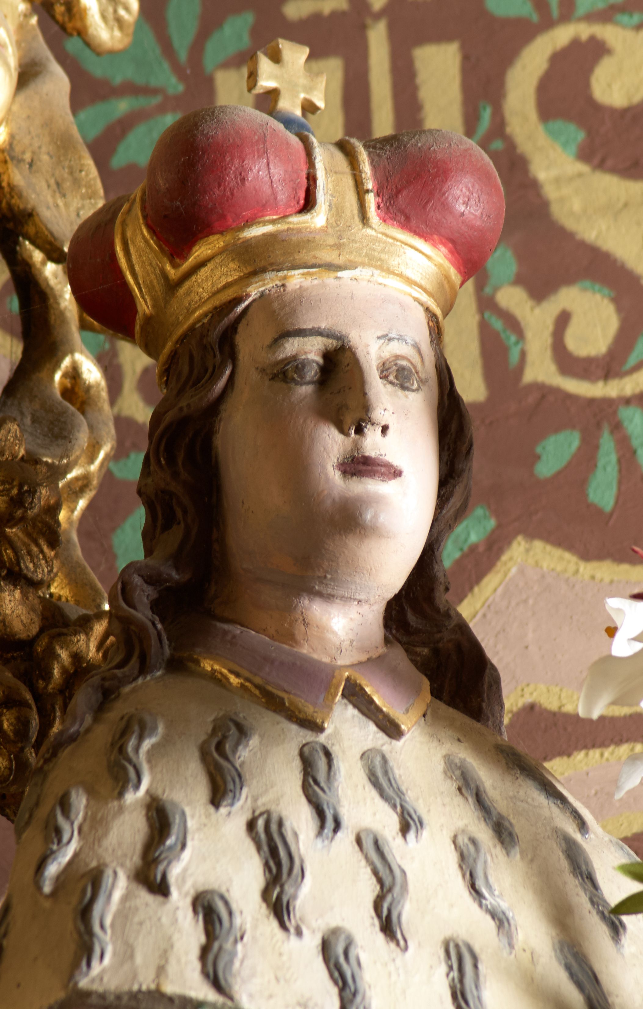 Rzeźba została wykonana przez nieznanego artystę w końcu XIX wieku. Prawdopodobnie pochodzi z rozebranego ołtarza bocznego. Na ołtarzu głównym została umieszczona w 2002 roku.