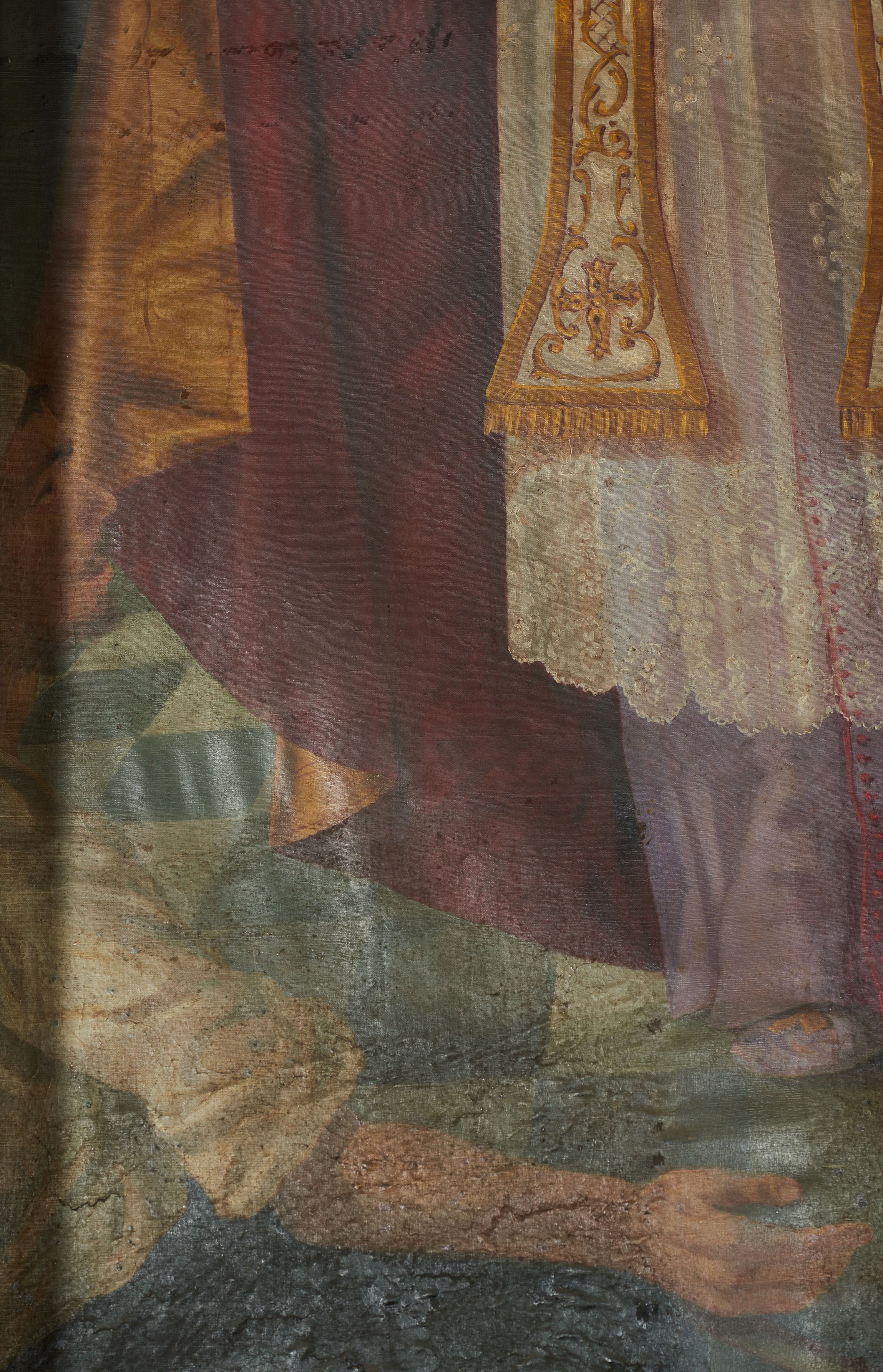 Płótno sfalowane, silne zabrudzenia, w lewym dolnym rogu obrazu łuszcząca się farba. W 1970 roku Karol Pustelnik i M. Paciorek odnowili obraz (oczyszczenie, wypunktowanie ubytków).