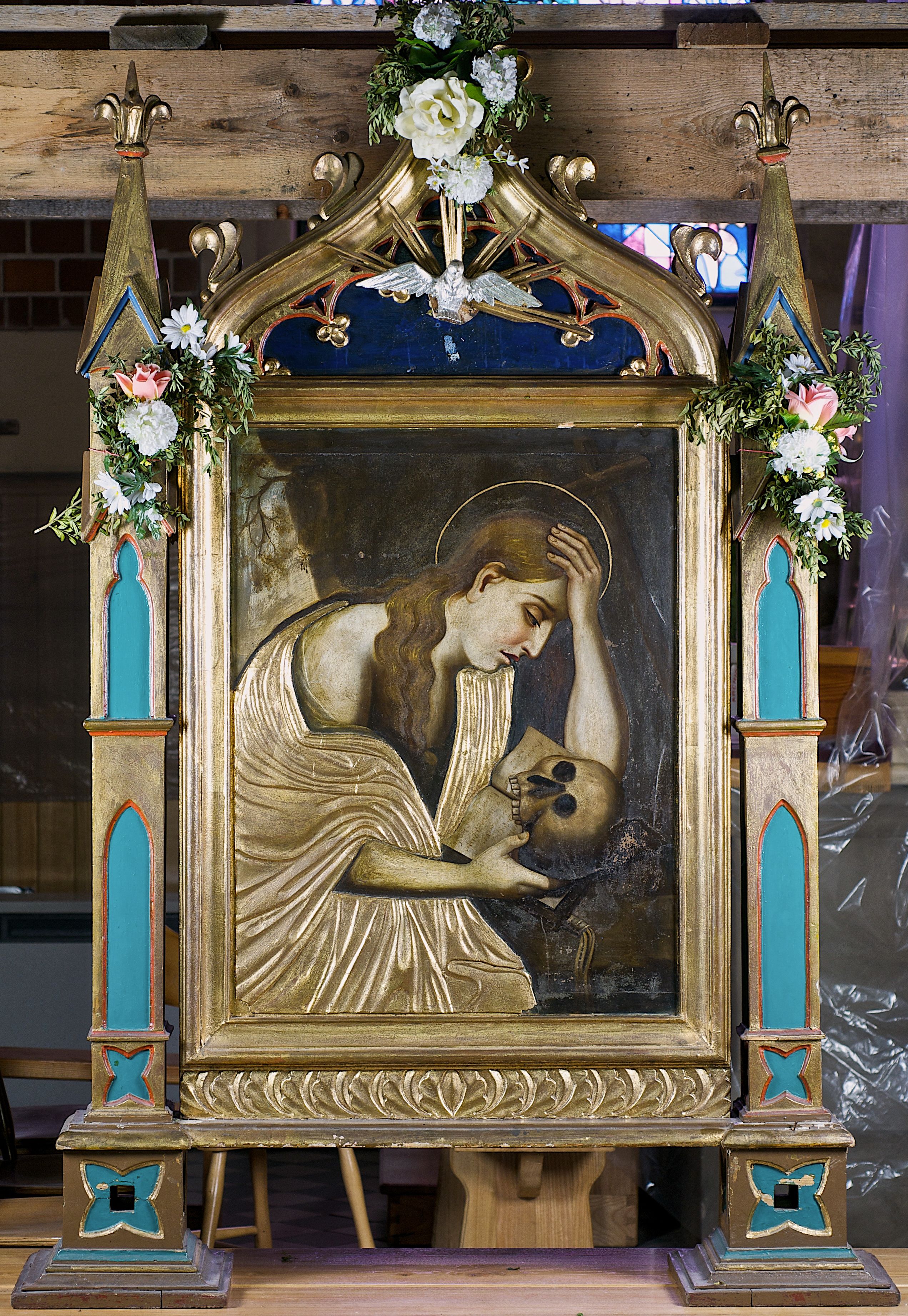 Nie jest znane autorstwo ani pochodzenie dziewiętnastowiecznego feretronu z wizerunkiem św. Marii Magdaleny. Co interesujące, przedstawienia awersu i rewersu odpowiadają dwóm etapom jej życia. Awers ukazuje wystawne i pełne przepychu życie przed nawróceniem, a na rewersie przedstawiono Marię w czasie pokuty, jakiej miała oddawać się przez 30 lat na pustyni. Rama, w której umieszczono feretron, ma formy neogotyckie, obrazy natomiast odwołują się do estetyki secesyjnej.