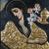 Kwitnąca gałązka, pojemnik, oraz suknie na przedstawieniach są wypukłe, aplikowane na powierzchnię malowidła.