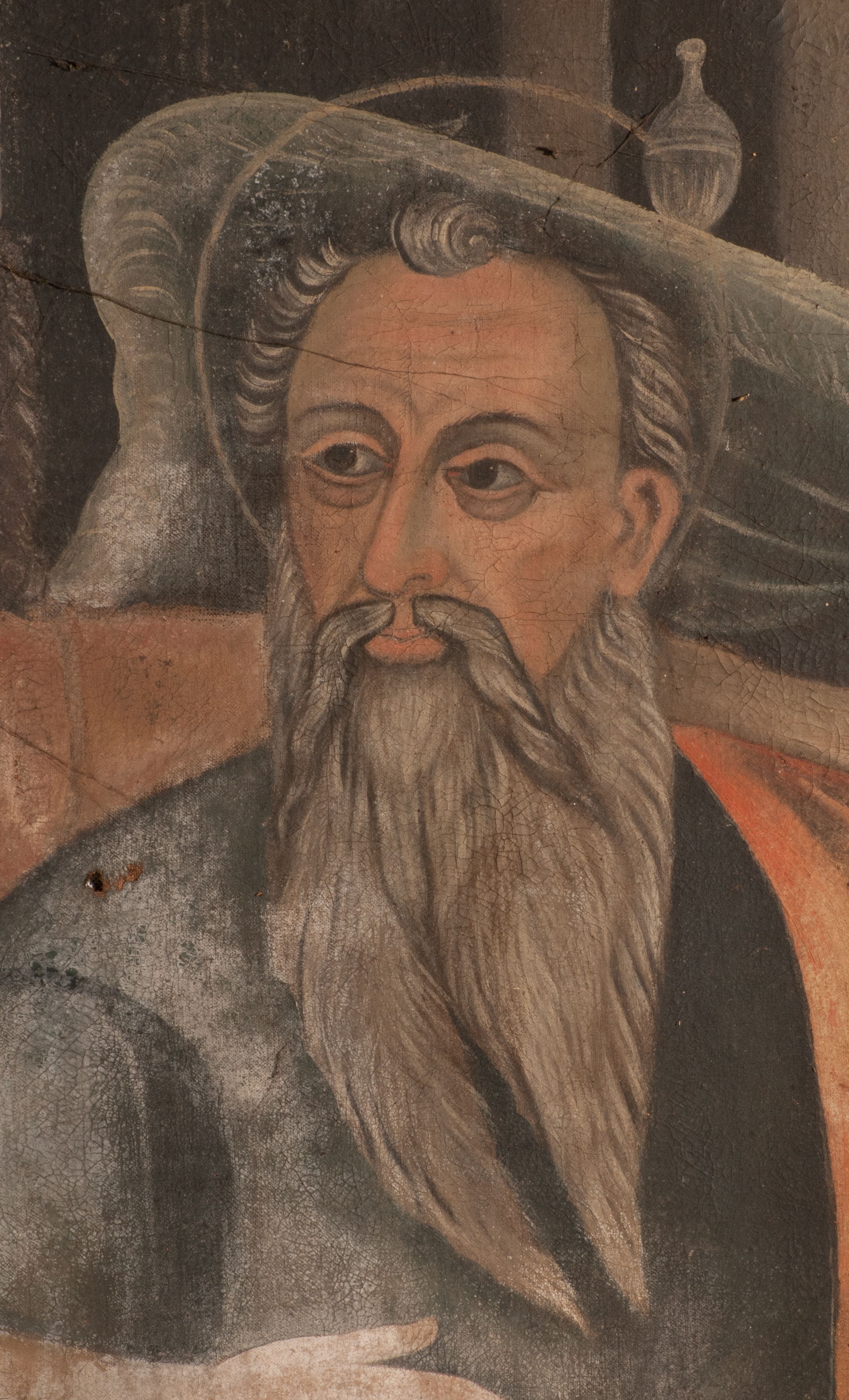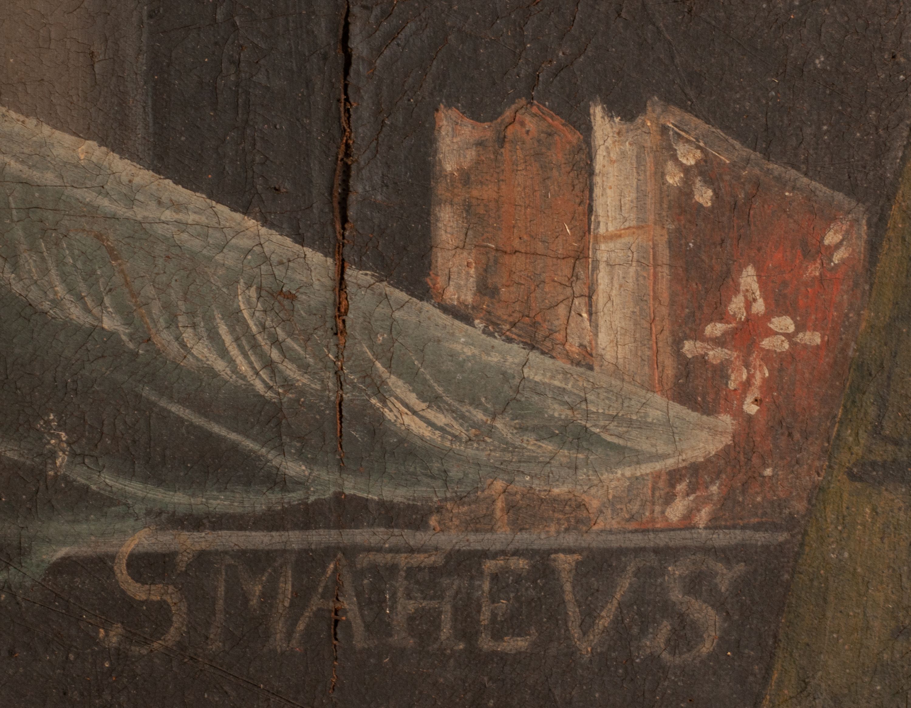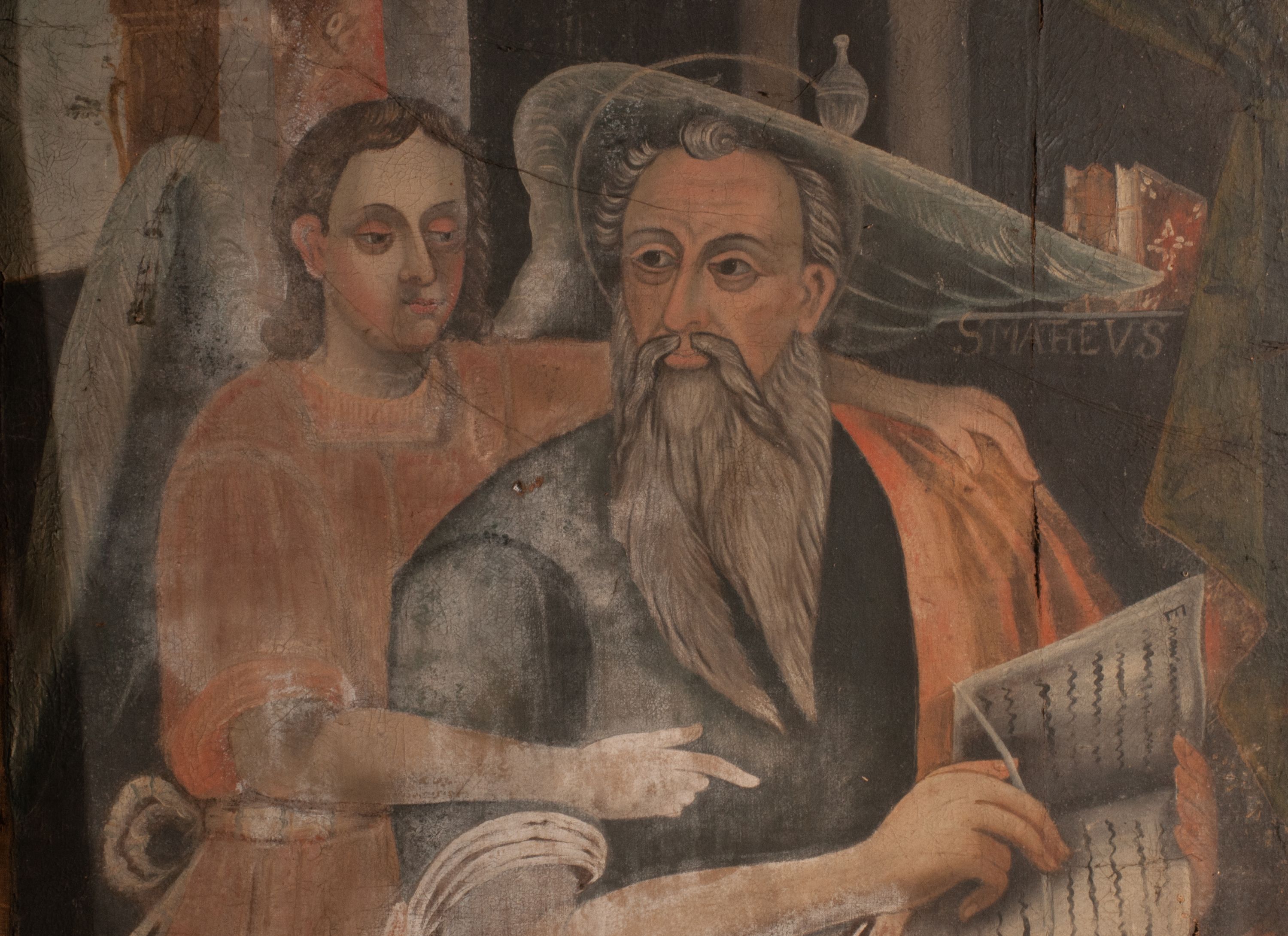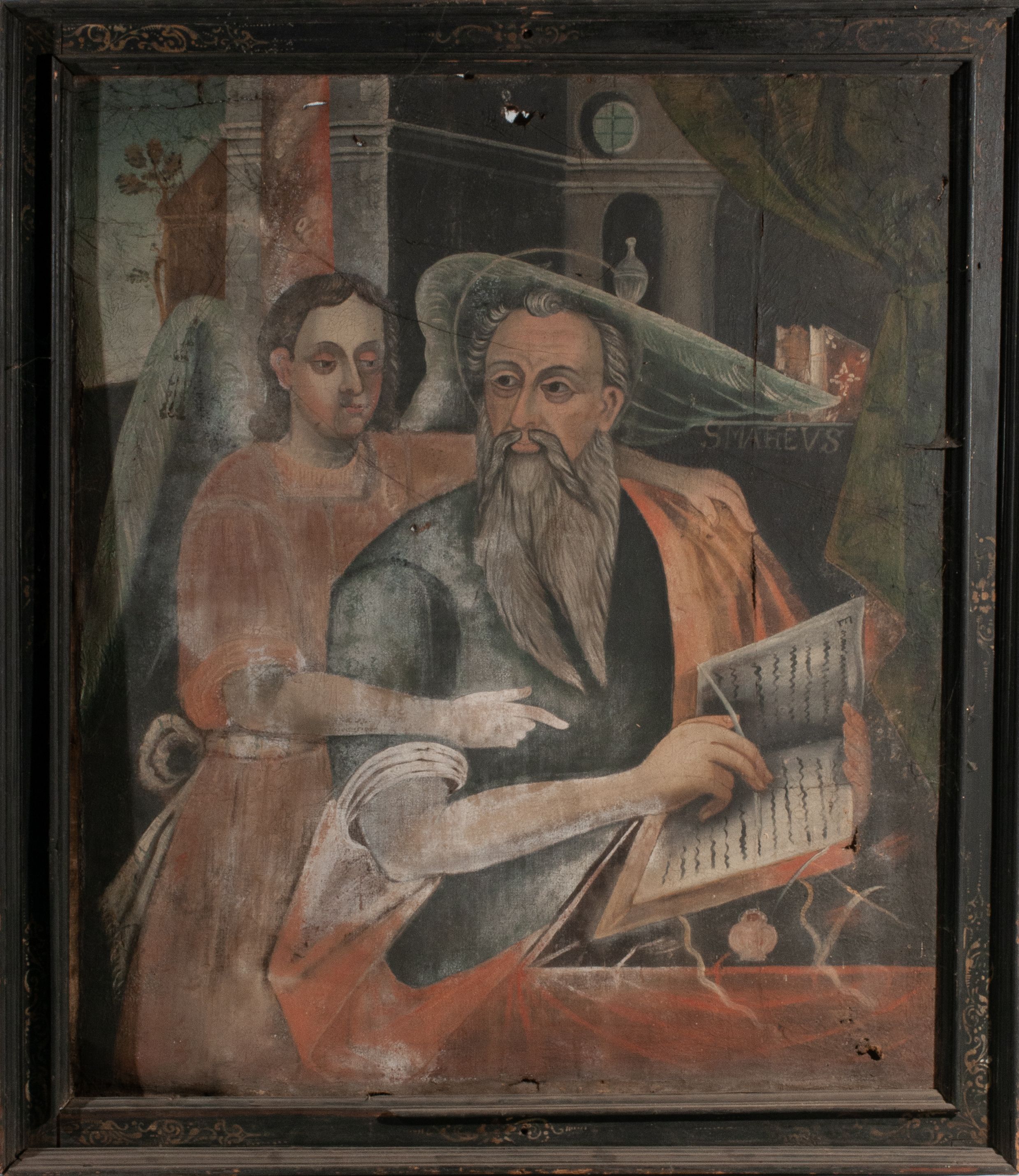 Obraz ze św. Mateuszem powstał w XVIII wieku. Najpewniej jest to jedno z czterech przedstawień ewangelistów, spośród których zachował się również obraz ze św. Janem.