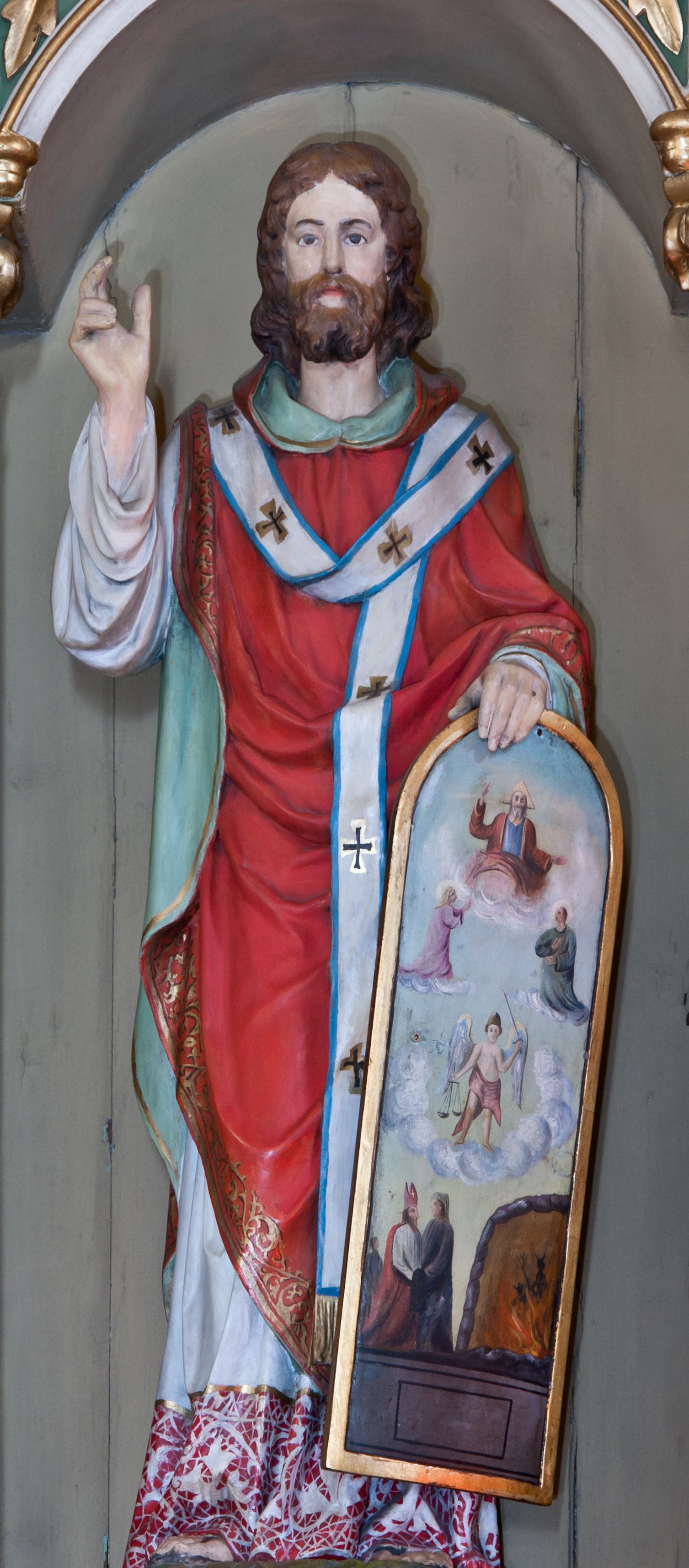 Rzeźbę św. Metodego wykonał w latach 1912-1913 tyrolski rzeźbiarz Ferdinand Prinoth. Figura przedstawia św. Metodego w stroju arcybiskupa obrządku wschodniego z obrazem Sądu Ostatecznego.