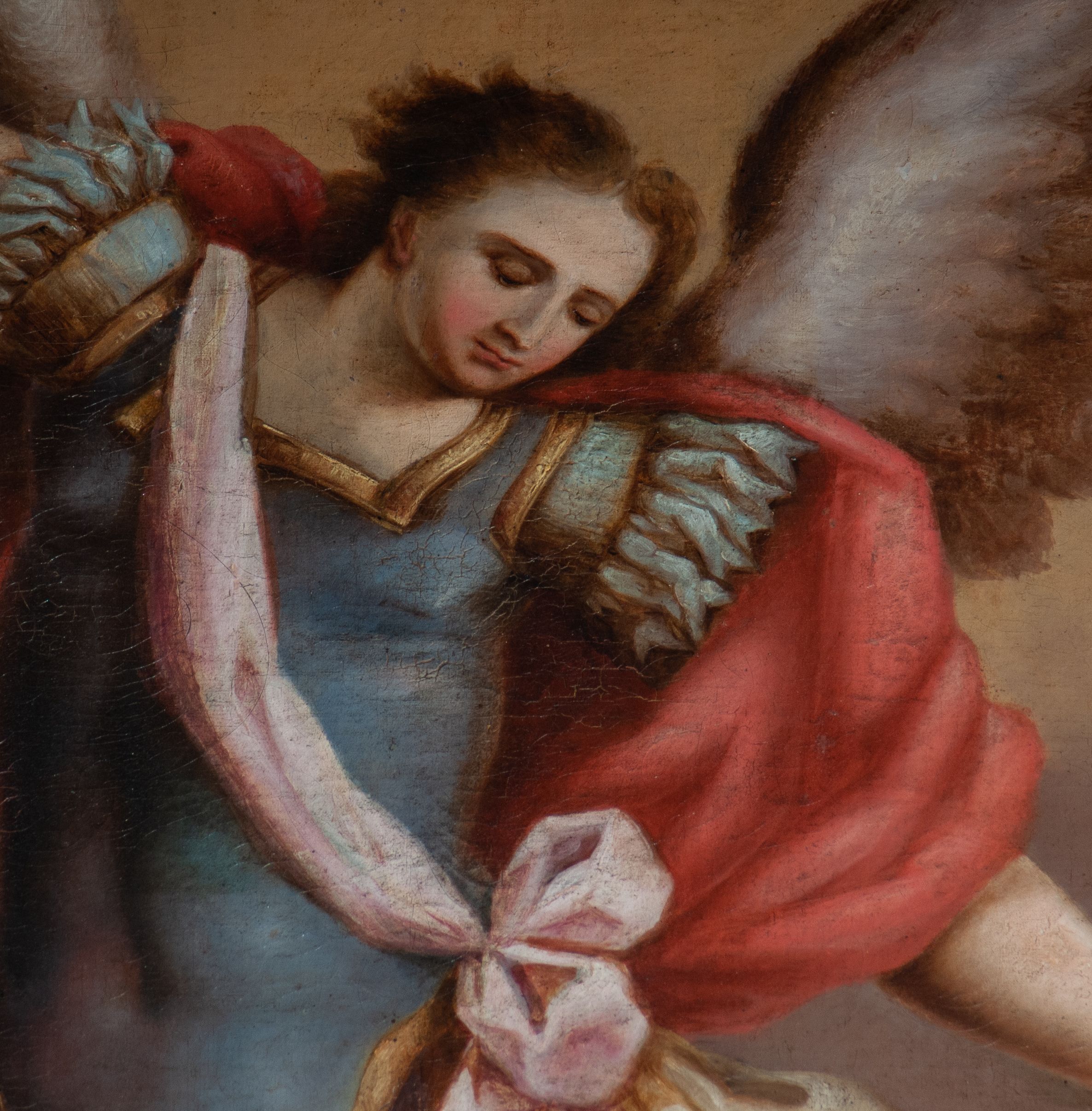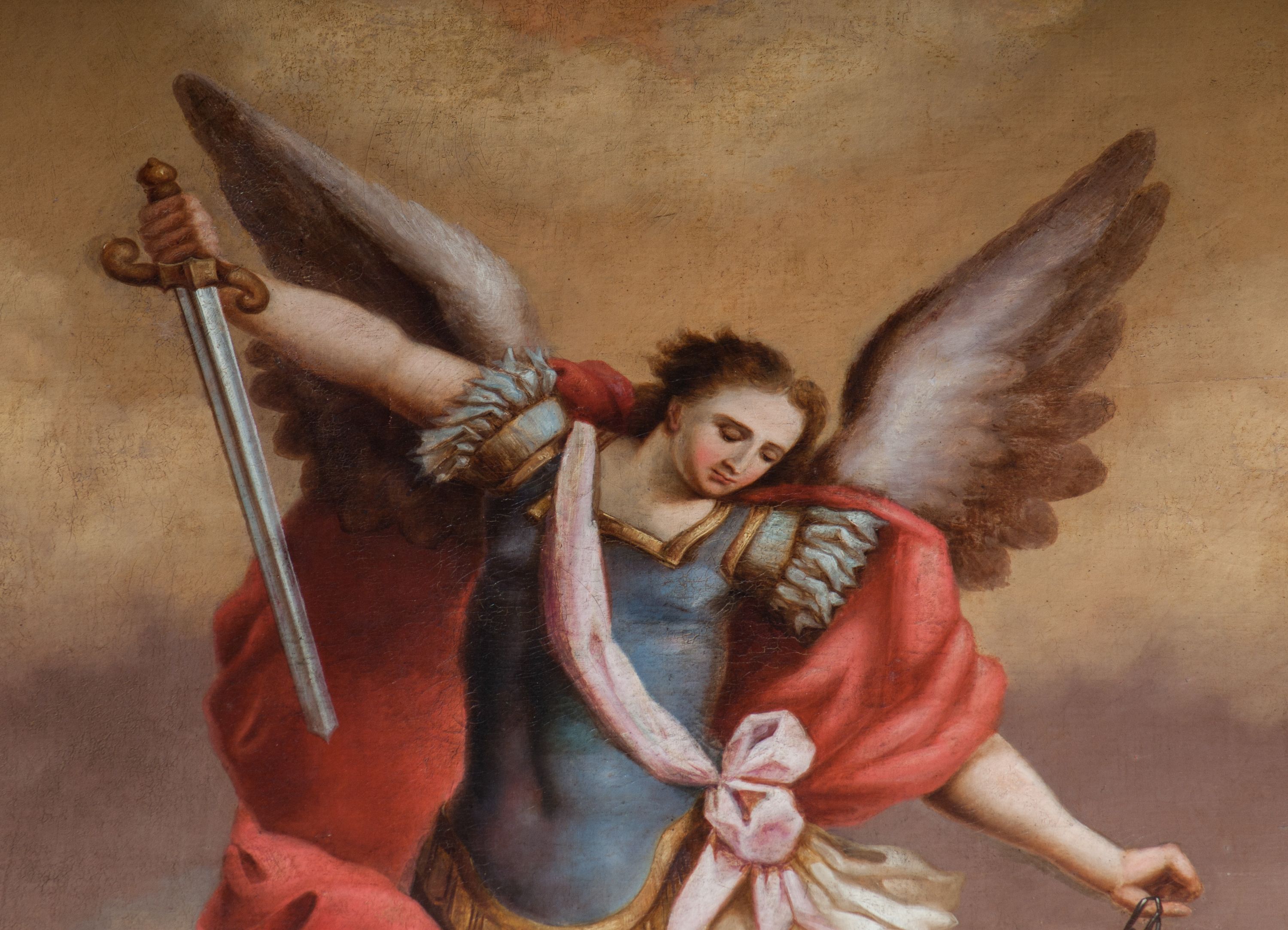 Michał Archanioł, najważniejszy z aniołów, jest uważany za wodza zastępów anielskich, anioła sprawiedliwości. Trzymany przez niego miecz jest, tutaj dosłownym, narzędziem walki z szatanem.