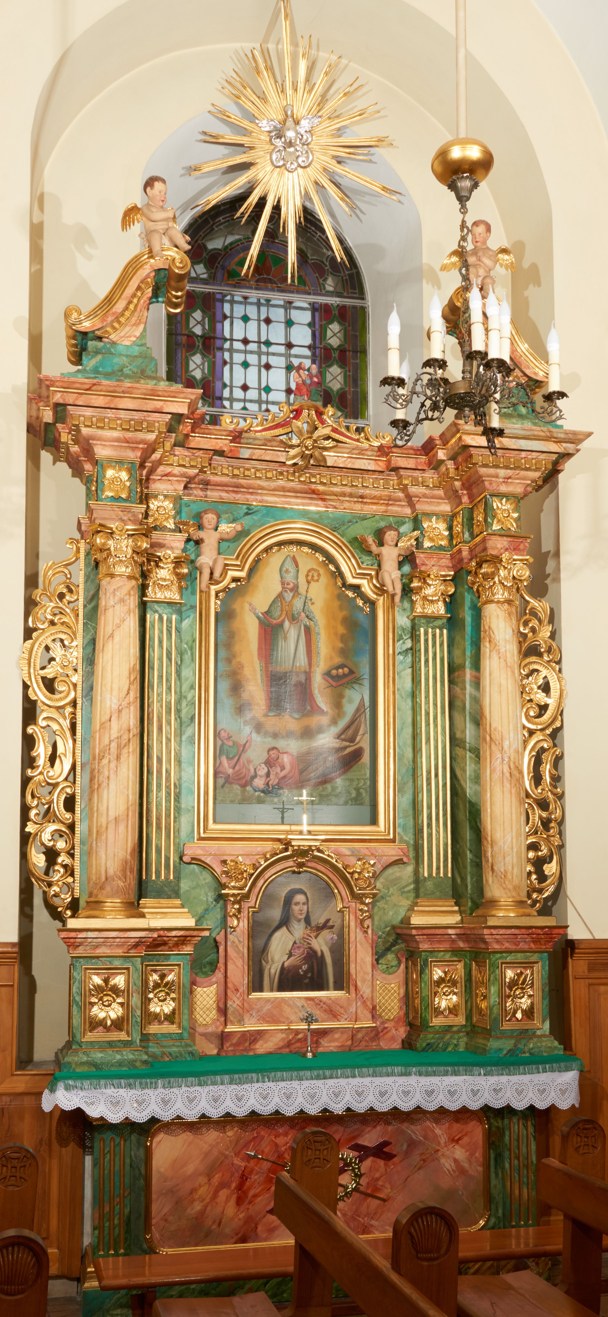Obraz św. Mikołaja umieszczony jest w ołtarzu bocznym z XIX wieku, wykonanym w stylu neobarokowym. Ołtarz ponadto zdobi wizerunek św. Barbary (XIX wiek) oraz nowszy św. Teresy od Dzieciątka Jezus z 1932 roku.