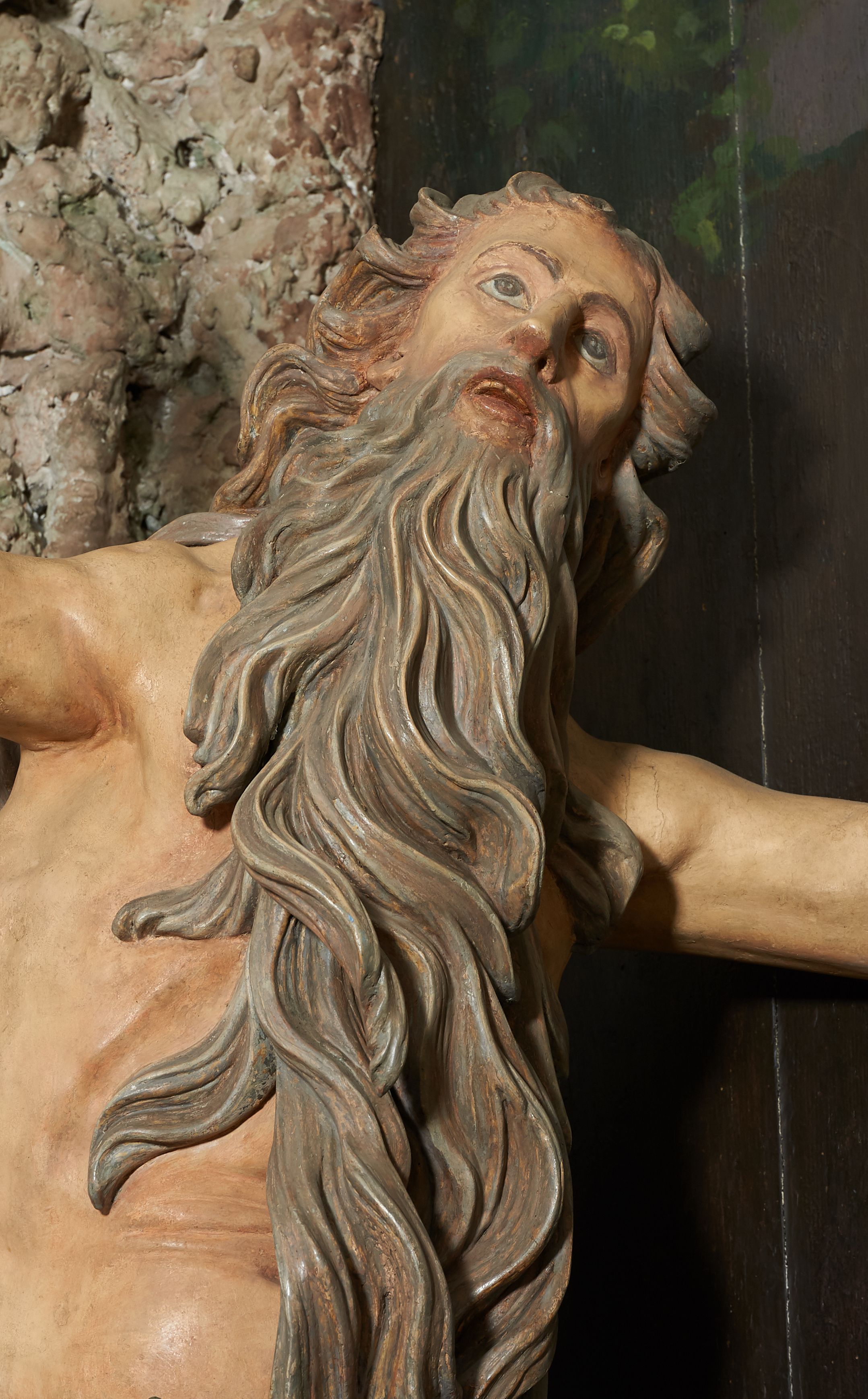 Święty Onufry był pustelnikiem z Egiptu, który spędził w samotności około 60 lat swojego życia. Jego postać znana jest z opisu św. Pafnucego, wspominającego spotkanie w grocie ze starcem o długiej, siwej brodzie przesłaniającej nagie ciało. Ta relacja wpłynęła na ukształtowanie wzorca ikonograficznego scen ze św. Onufrym.