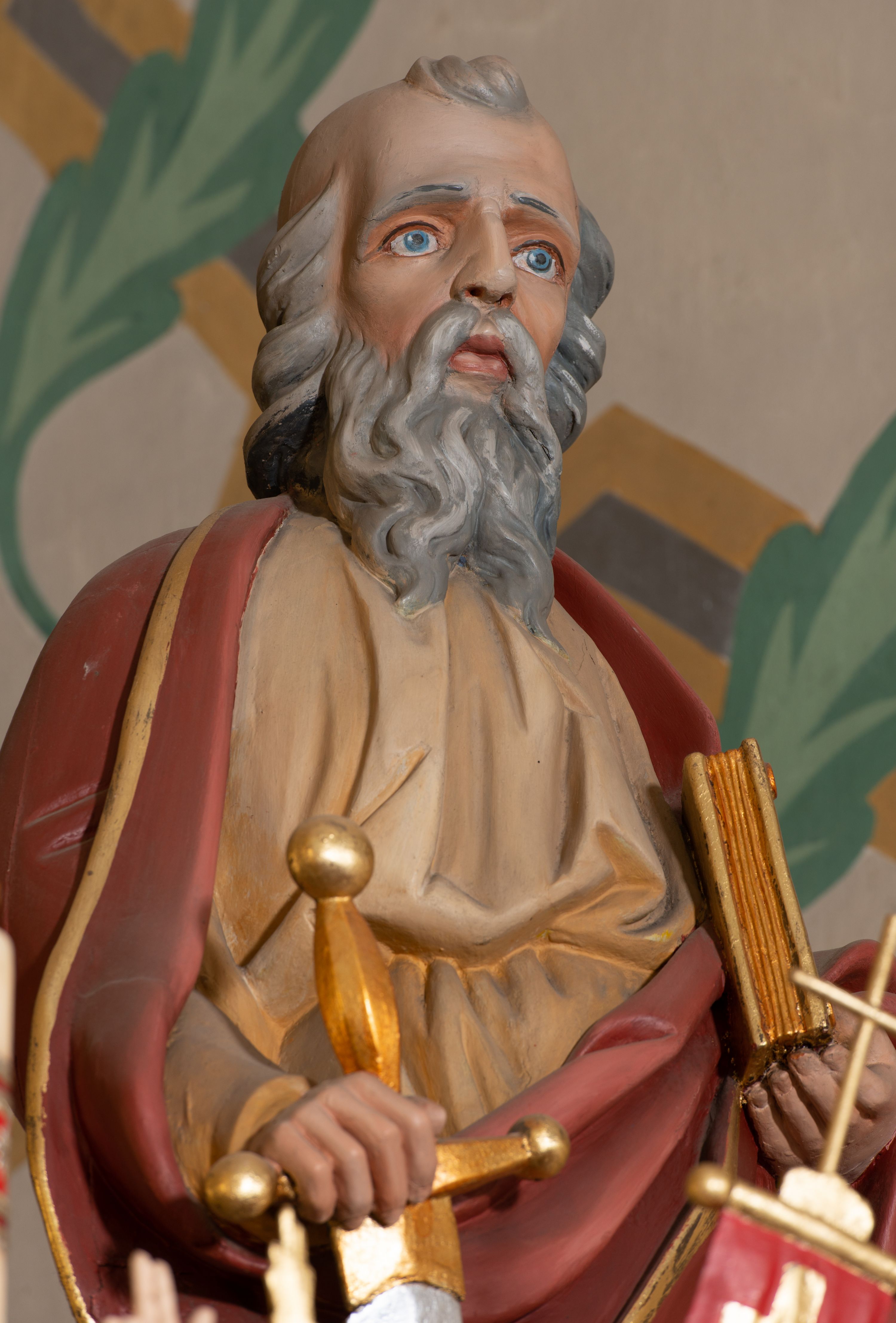 Figura św. Pawła powstała w XIX wieku. Została wtórnie umieszczona na bramce ołtarza głównego.