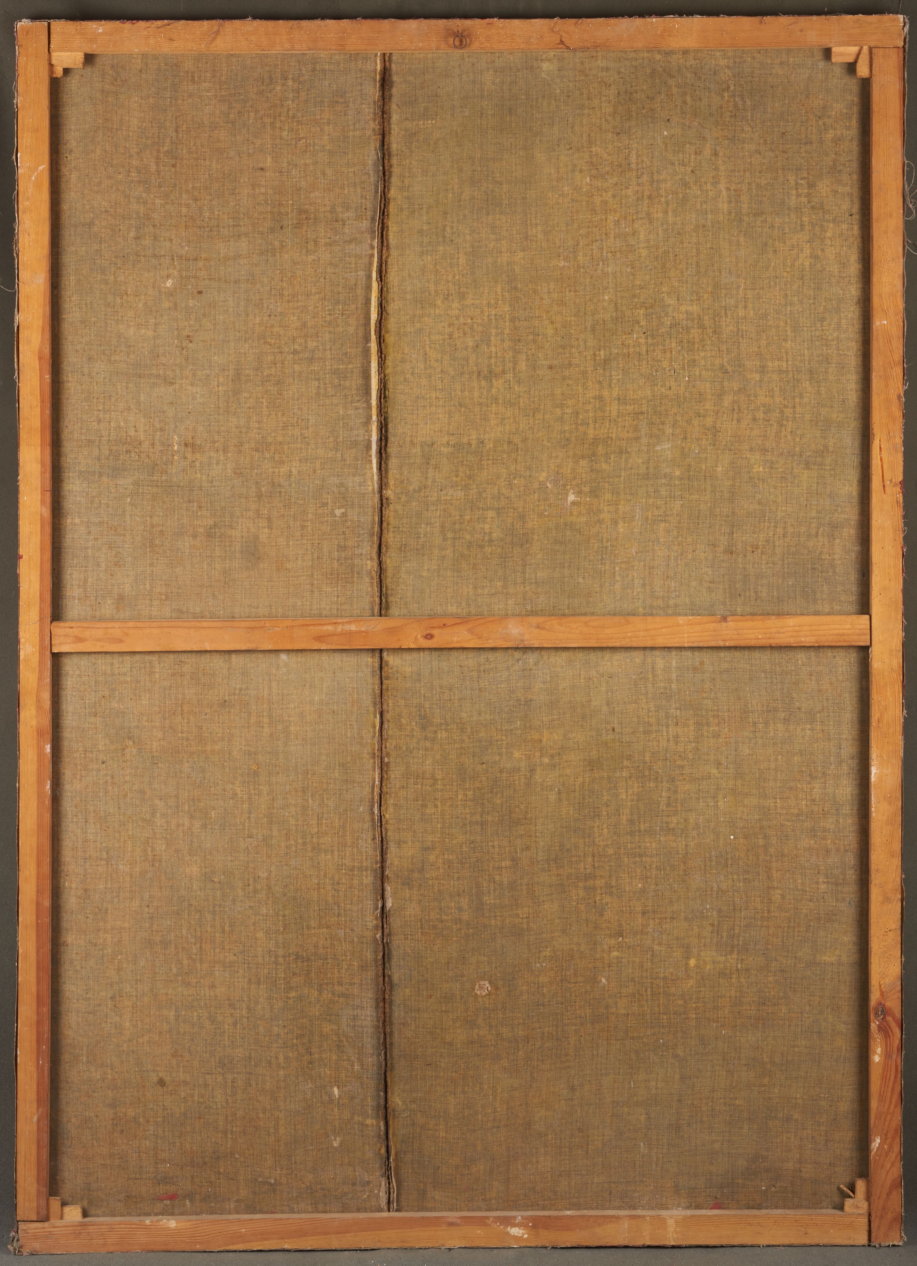 Obraz po przeprowadzonych zabiegach konserwatorskich, zdublowany na masę woskowo-żywiczną. Na całej powierzchni zabrudzony