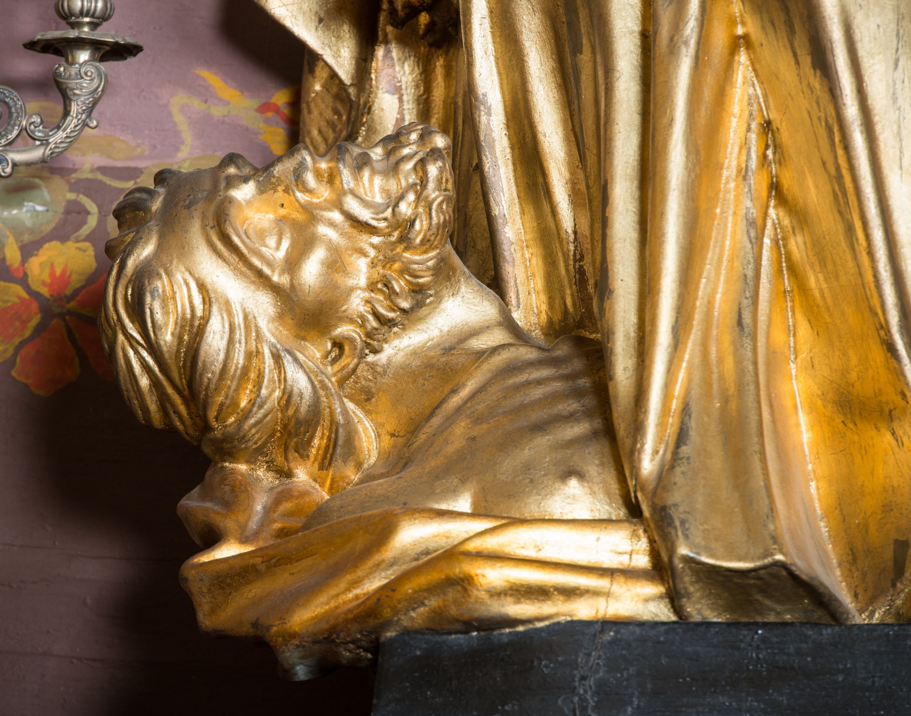 Figura św. Stanisława powstała razem z całym rokokowym wyposażeniem kościoła w 1779 roku. Została wykonana przez współpracujących ze sobą braci – Antoniego i Ignacego Korneckich.